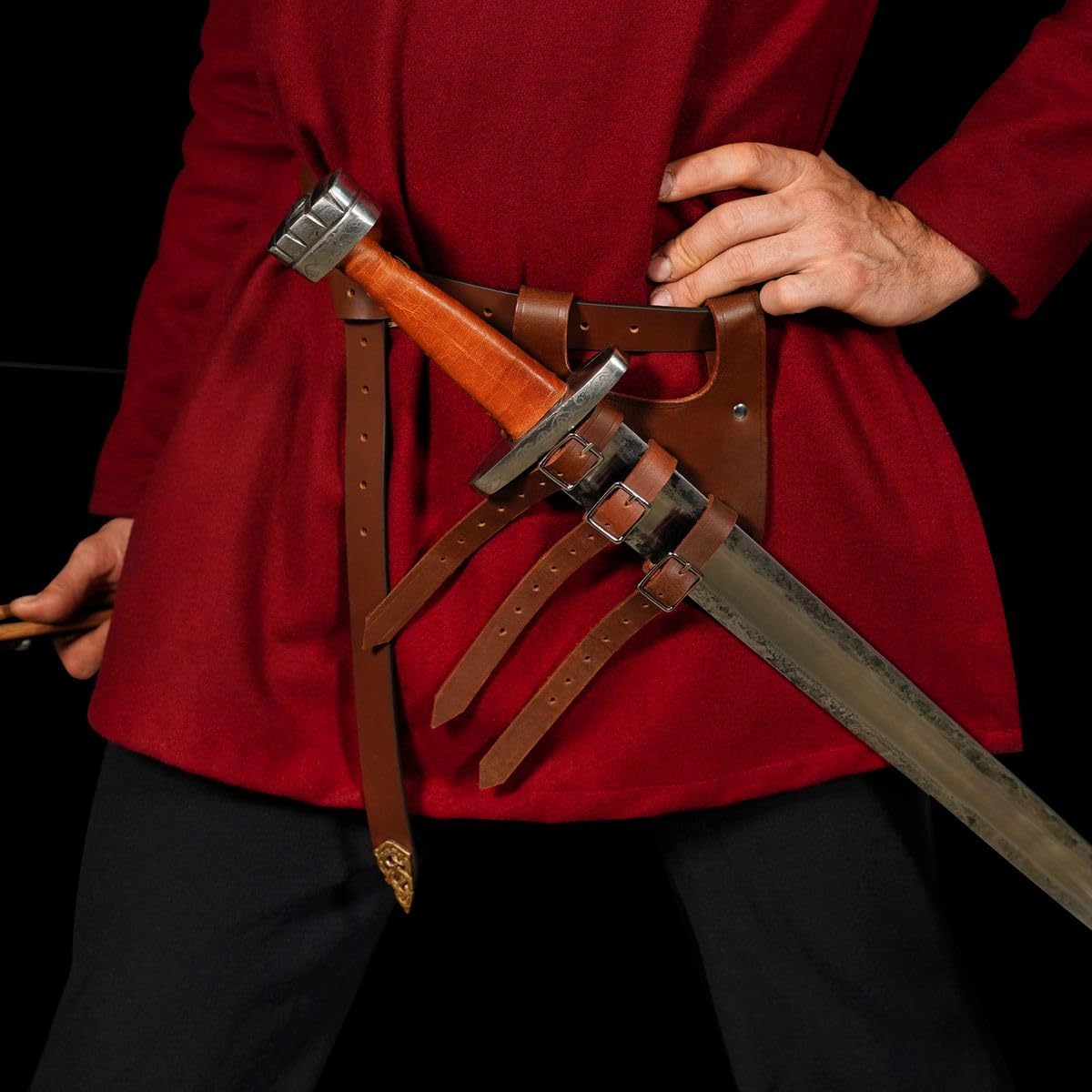 Mythrojan Medieval Sword Frog Adventurer with Leather Holder for Universal Rapier, Broadsword, Cutlass