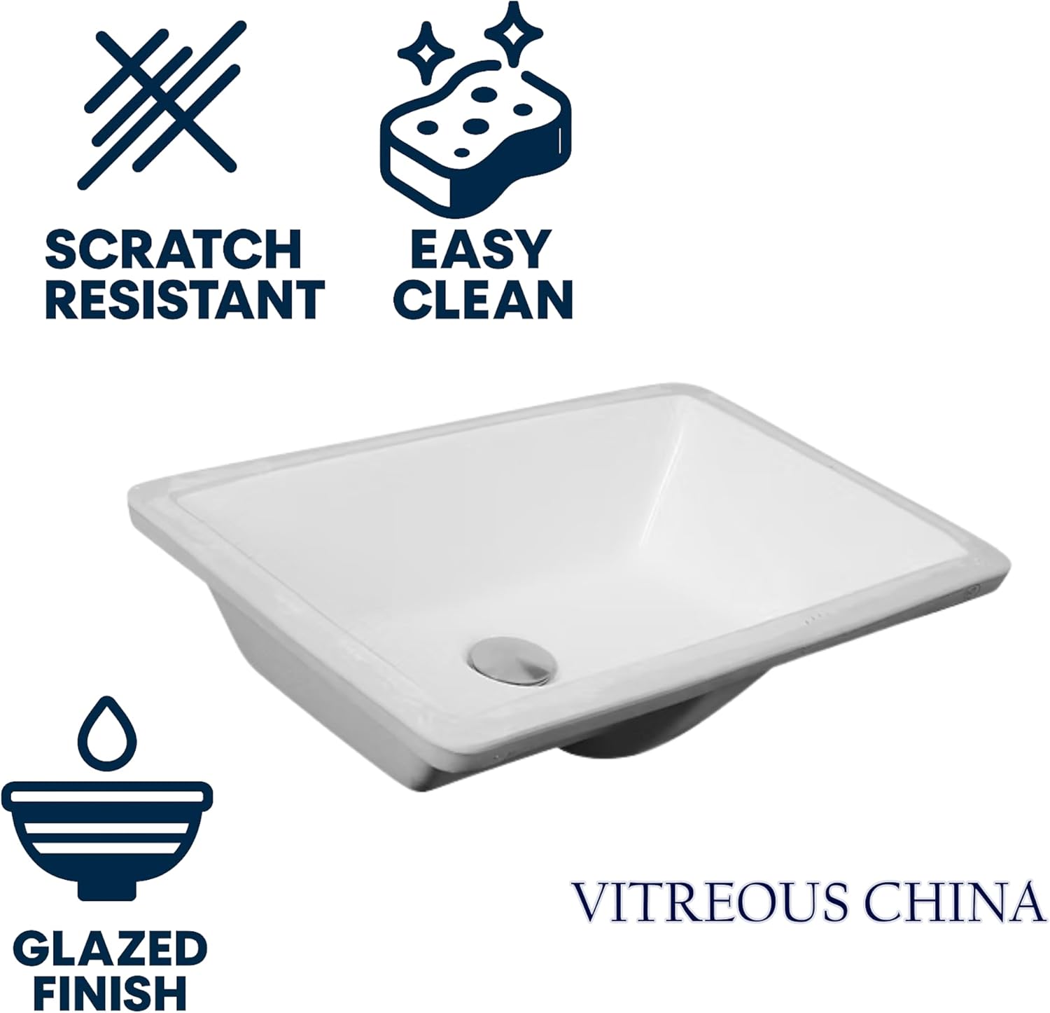 Product Description Add a touch of modern style to you bathroom with this undermount vanity sink crafter of vitreous china. Slope sides and a flat bottom give this sink a transitional look. From the Manufacturer Add a touch of modern style to you bathroom with this undermount vanity sink crafter of vitreous china. Slope sides and a flat bottom give this sink a transitional look.