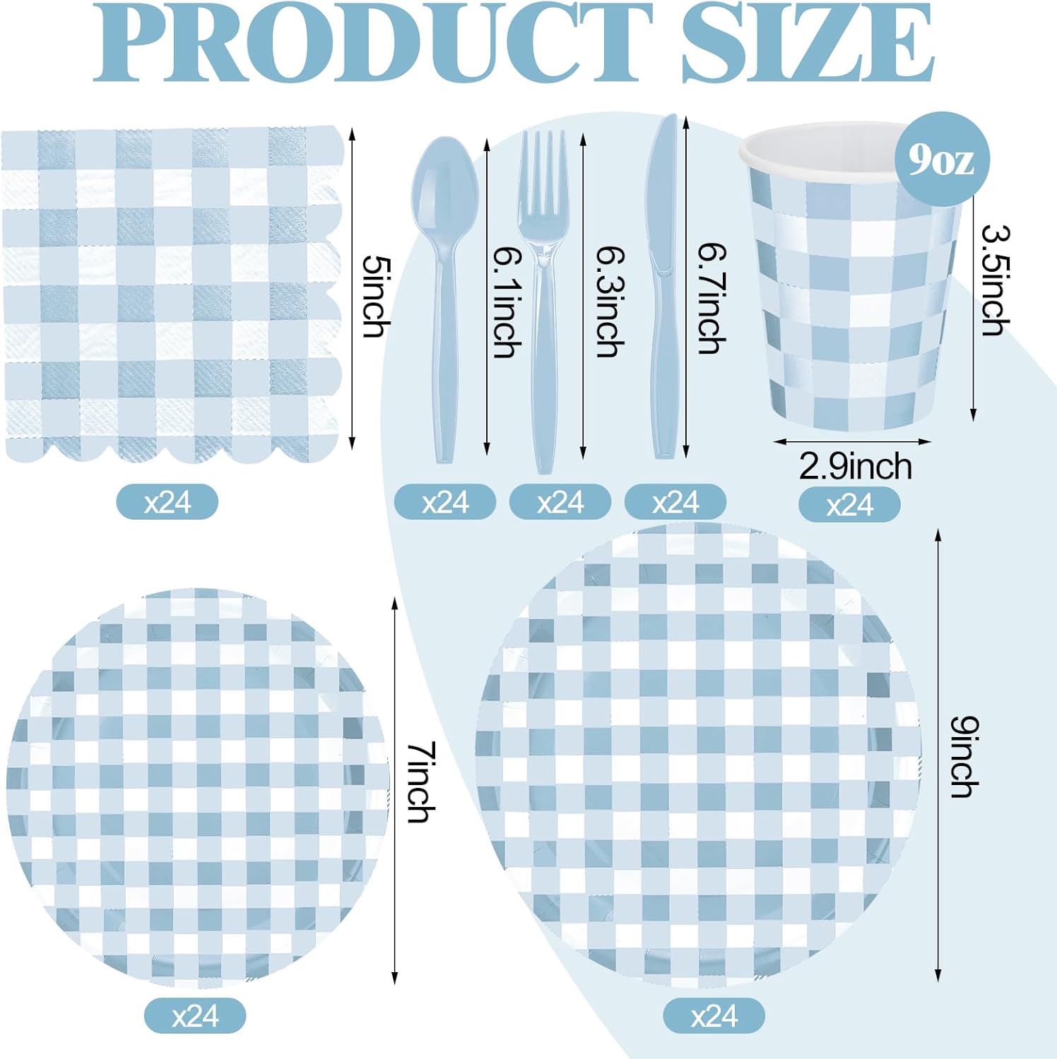 | Included Components | 24 x Cups, 24 x Napkins, 24 x Plates (7 inch), 24 x Plates (9 inch), 24 x Spoons |