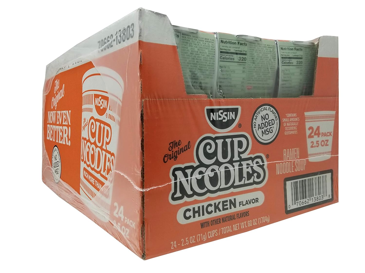 Instant gratification -- just add hot water and "go from hungry to happy in record time." Yummy ramen noodles make the perfect light meal or hot snack. Unique suspended-noodles system speeds up the cooking process while ensuring that heat is distributed evenly. Food Type: Soup; Flavor: Chicken; Capacity (Weight): 2.5 oz; Capacity (Volume): 2.5oz.