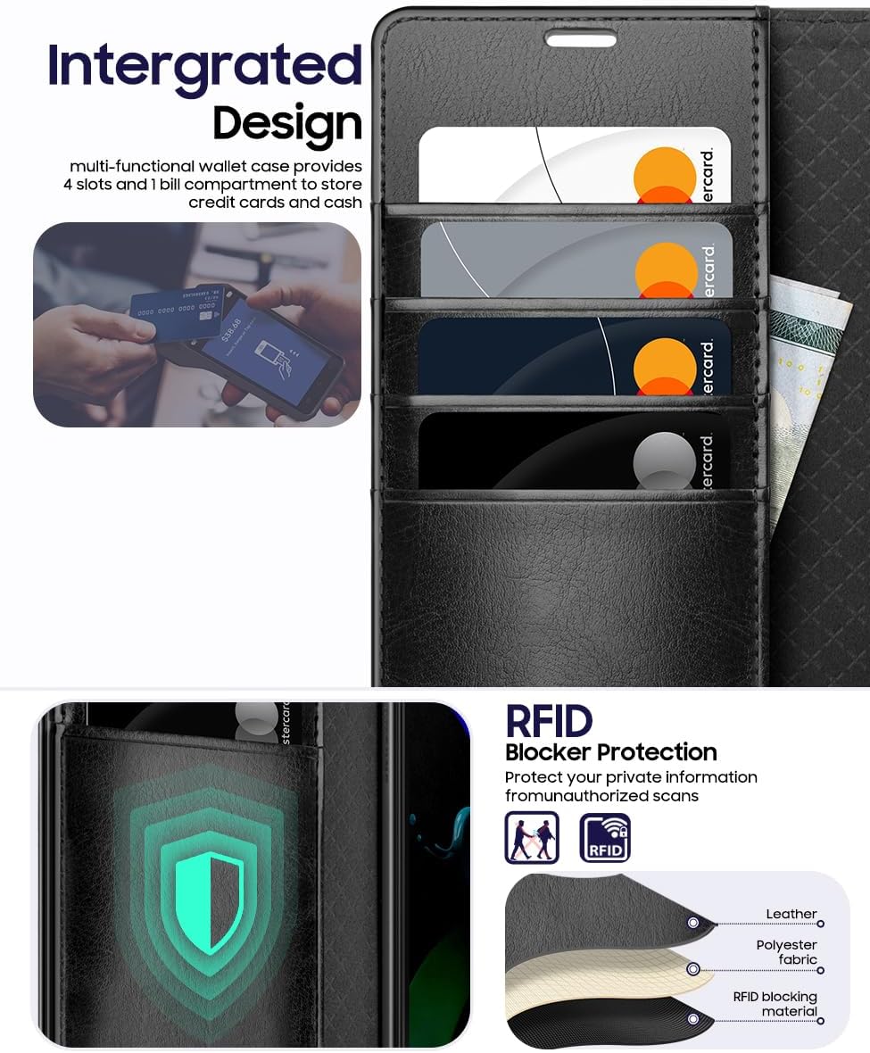 | Additional Features | Built-in Screen Protector, Kickstand, RFID Blocking, Travel |