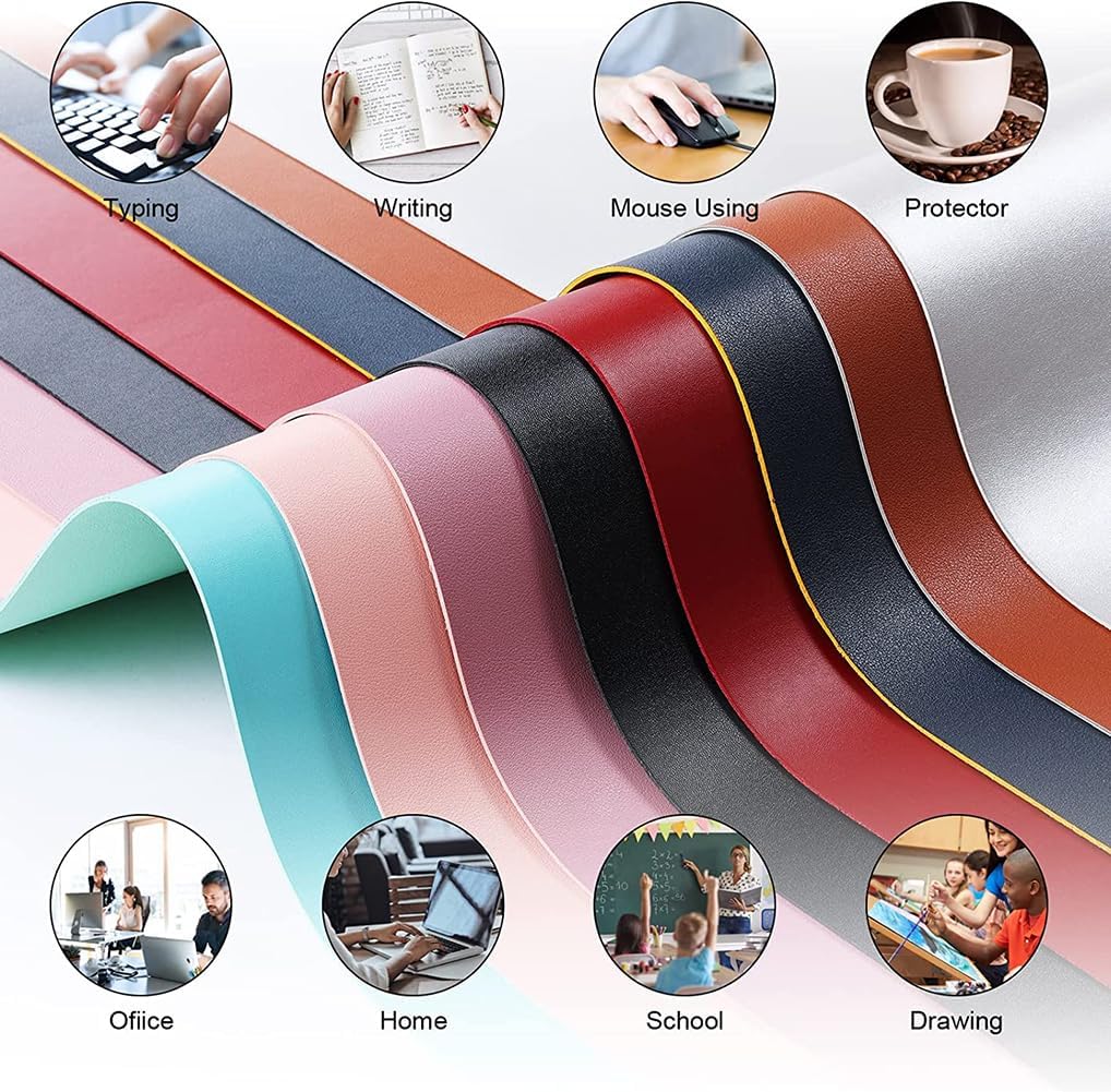 Feature:1.Dual-Sided Usage:Different color in desk pad each side with same material,special fashionable and durable design to use in both side.2.Protect your glass and wooden desktop from scratches,stains,and spills.3.High-Quality PU leather Material:Just use cloth to wipe it,very easy to clean,wet cloth would be prefer if there are too much dirt in the mat.4.Many colors and 5 sizes for your options,both sides can be use as desk pad,mouse pad,desk protector or decor.Detailsï¼ Quality Material: PU leatherSize:60x30cm/70x35cm/80x40cm/90x45cm/120x60cmPackage included:1 x Leather Desk Pad