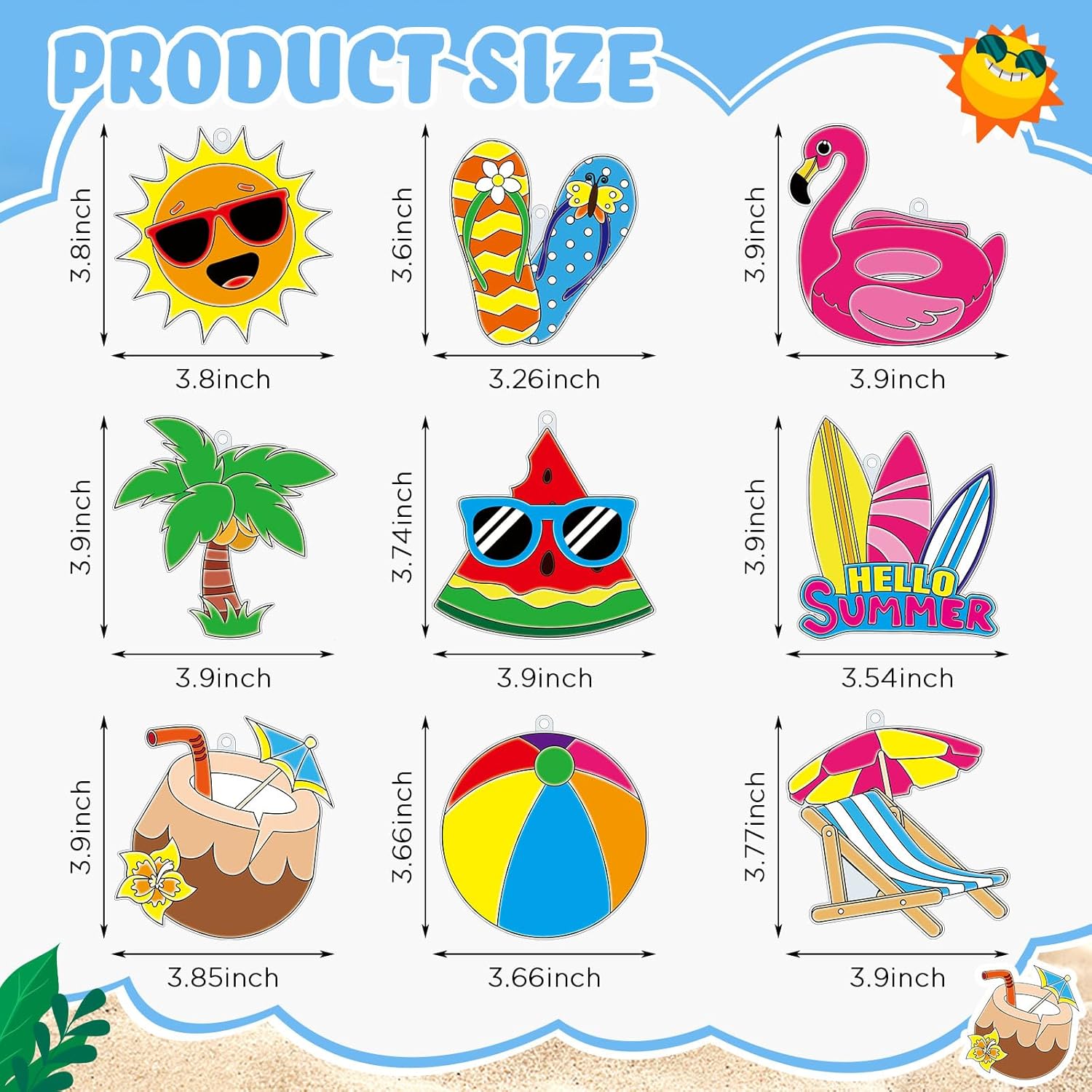 | Included Components | 36 x Summer suncatchers, 3 Strips paints pots, Paintbrushes, Suction hooks, 1 Roll of fishing thread, 432 Acrylic beads |