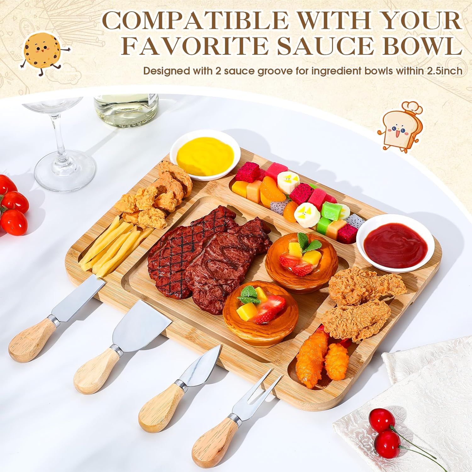 Features: Durable Material: This board is designed for longevity and durability, ensuring endless rounds of cheese, meat, and appetizers. Its sturdy construction is a testament to well in craftsmanship, ensuring you get the well experience every time you use it. Portable and Travel Friendly: Our design emphasizes convenience and travel-readiness. Being a travel charcuterie board, it comes with a handle, facilitating easy carry along for outdoor trips. Make every outing a chic picnic with our portable charcuterie board with lid. Specifications: Material: Charcuterie board: Bamboo with plastic lid Knife: Stainless steel Color: Bamboo with clear lid Size: 11.02 x 14.96 inches/ 28 x 38 cm Package includes: 2 x Charcuterie boards 4 x Stainless steel knife and fork Notes: Manual measurement, please allow slight errors on size. The color may exist a slight difference due to different screen displays
