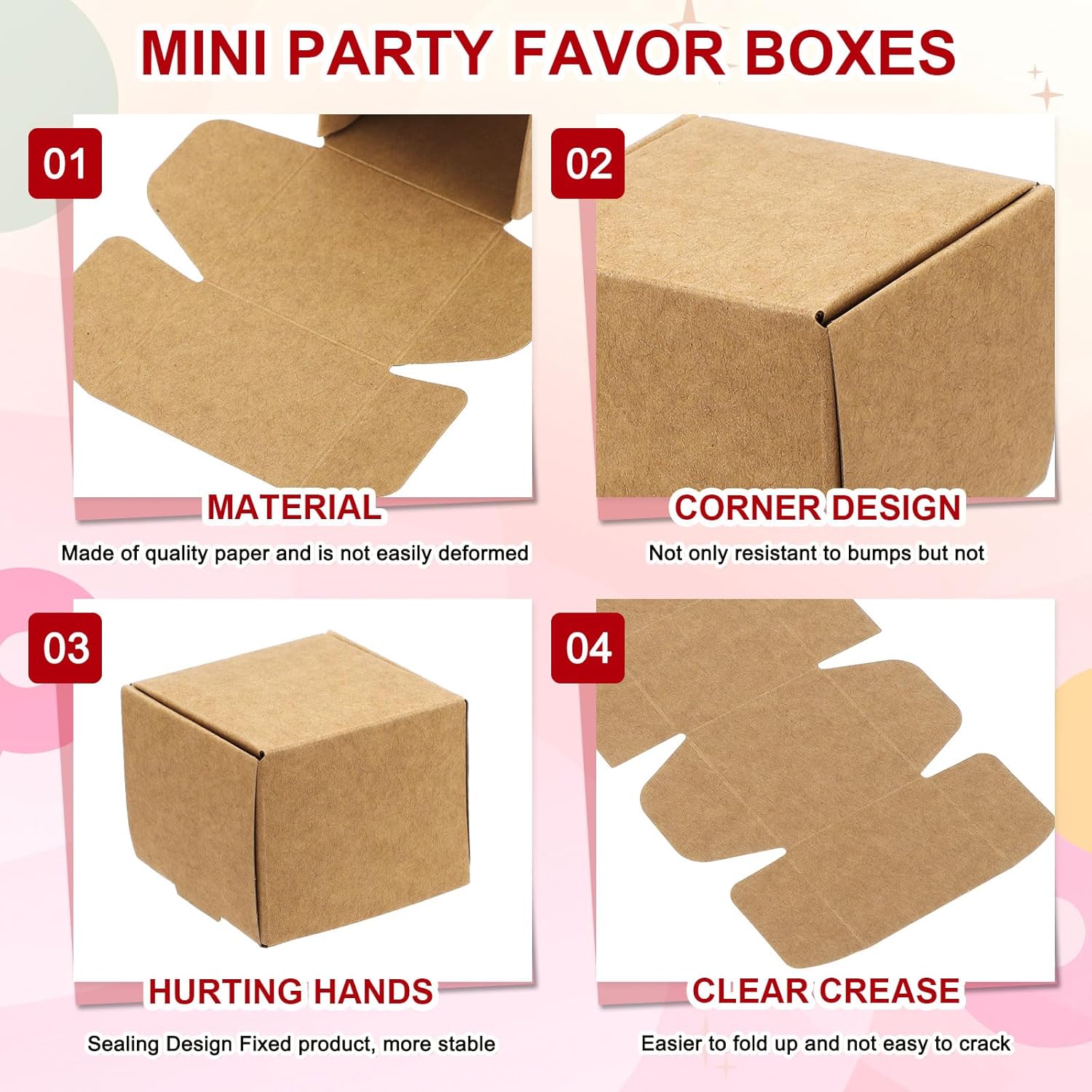 These elegant mini gift boxes are perfect for presenting jewelry, candies, and small keepsakes with style, available in various sizes from 1.2" to 3.71" to accommodate all your gift-giving needs. These small gift boxes with lids provide a beautiful way to package rings, earrings, candies, chocolates, and other tiny keepsakes for weddings, birthdays, holidays, and special occasions.SpecificationColor: KraftMaterial: Kraft PaperFold Size: 100x100x50mm / 3.9x3.9x2 inch(L*W*H)Assembly: Required (easy fold design)Packing List: 50 x Square Gift Box With LidsAdvantageThese mini gift boxes are crafted from quality, durable kraft paper that maintains its shape perfectly, ensuring your precious items remain secure and elegantly presented.Versatile square design works for various small items such as jewelry, candy, soap, or trinkets, making them perfect for any gift-giving occasion.Each small cardboard box arrive flat for space-saving storage and assembles in seconds without tools, allowing for the convenient preparation of multiple gifts.The minimalist design offers a perfect canvas for personalization - add ribbons, stickers, or custom drawings to create unique gift boxes that reflect your style.These little boxes suit all special occasions, including weddings, birthdays, and holiday celebrations.Instruction1. Gently fold along the pre-creased lines, as shown in the assembly guide image.2. First, fold up the bottom panel and crease firmly.3. Next, fold in the side panels and secure them properly.4. For the lid section, fold down the top flap and secure the side flaps.NOTE: Please verify size dimensions carefully before ordering to ensure they meet your specific needs.