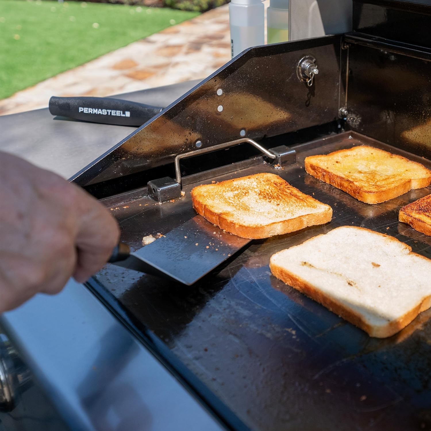 Fire up the grill and get cooking with the Permasteel Grill and Griddle Tool Set. This 10-piece grill accessory set includes two griddle spatulas, one burger spatula, one pair of tongs, one turner, one grill scraper, two egg rings, and two plastic bottles. The wide variety of tools provides everything you need for indoor and outdoor cooking, from making burgers or chicken on the grill to breakfast favorites on the griddle. The soft touch non-slip handles offer additional comfort while using the utensils, while the heavy duty stainless steel construction is designed for long-lasting durability. These easy-to-clean metal grill tools are dishwasher safe with hand-wash only plastic bottles. Since 2003, Permasteel has been committed to offering quality and value. We specialize in making high quality gas grills, BBQ accessories, patio heaters, and patio coolers for all price ranges. We continue to develop new and innovative products that will provide consumers with more options in all of our product categories.