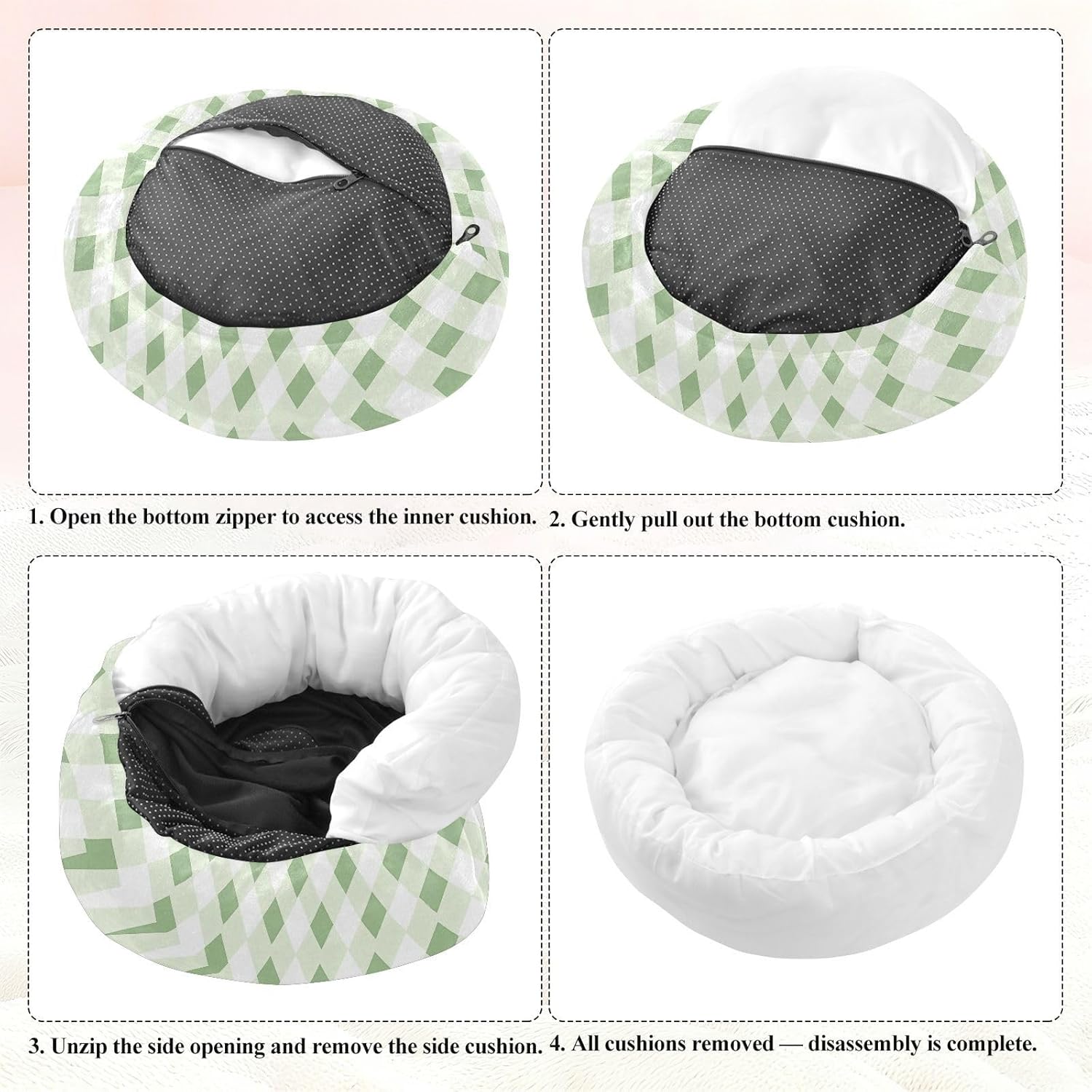 Material: Polyester + Filled Fiber + Drip Plastic. Our Cat Pillow Bed features a donut-shaped appearance design and is filled with silk-like cotton inside. It has excellent elasticity and fluffiness, providing comfortable support for pets and relieving joint pressure.Product Design: The overall shape is circular, with smooth and gentle lines, which conforms to the Safaris of pets who like to curl up and can give pets a full sense of security. Cat Pillow Bed edge part will slightly bulge, forming a soft cushion that pets can lean on and also prevent them from rolling off while sleeping.Applicable Scenarios: This comfortable bed cat can be used by small pets such as cats, dogs, rabbits and hedgehogs. Our Cat Pillow Bed is very convenient to carry and place both indoors and outdoors, as well as during travel.Washing Instructions: Hand wash or machine wash. Air dry in the shade. Please use a mild neutral detergent.