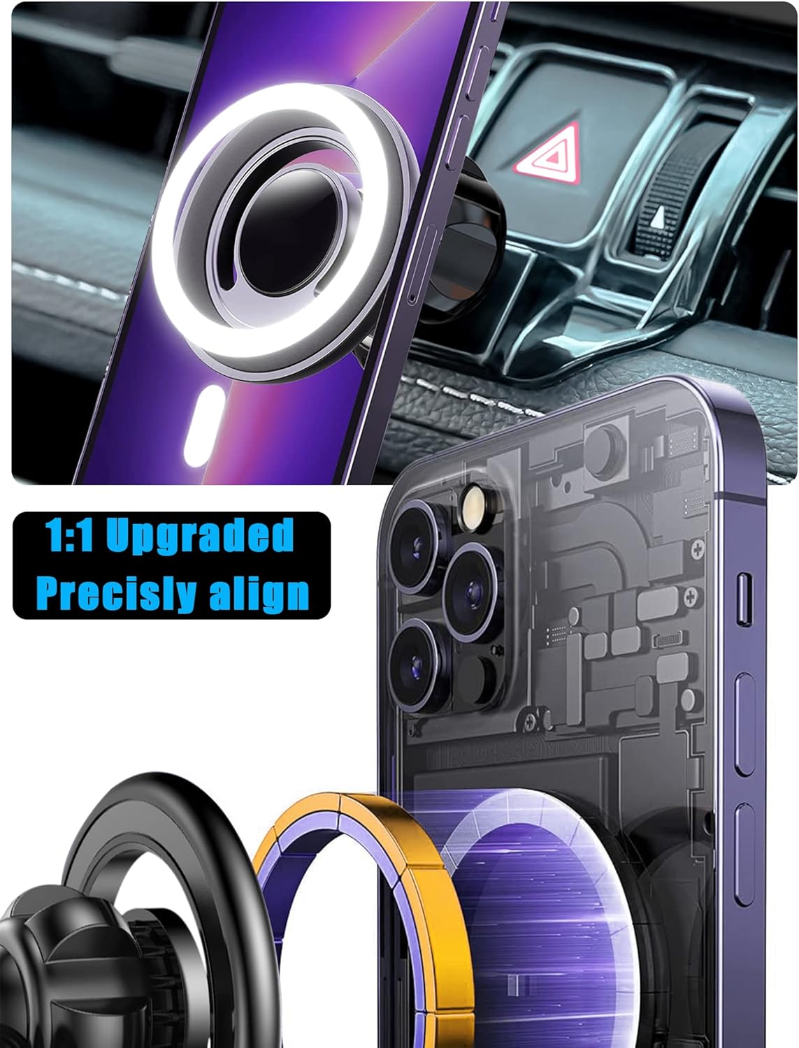 | Additional Features | ➤ Rotatable, Hand Free, Rust Resistant, ➤ Magnetic Phone Holder for Car, ➤ Slim Fit Won't Block Air Vent Wind, ➤ Works for All Mobil Phones, ➤ Extremely Stable Suction Power, ➤ Universal Air Vent Phone Holder Car, ➤ Custom Phone Mount for Car Magnetic, ➤ 360 Degrees Rotation Magnetic Car Mount, ➤ Mag-Safe Car Mount for iPhone 12/ 13/ 14/ 15 Series Phones Directly, ➤ Mag-Safe Auto Alignment |