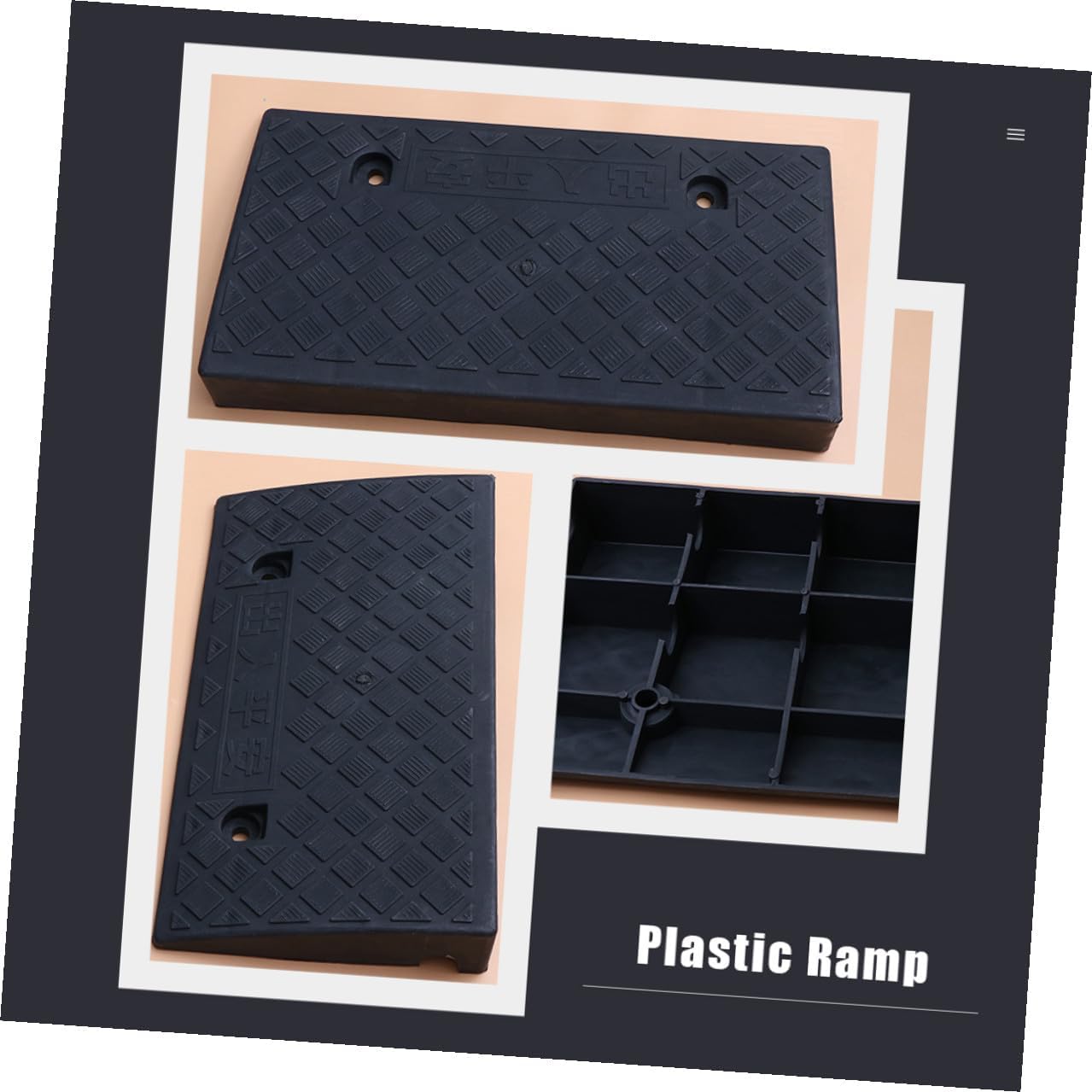 Package Include 1 x Curb Ramp Characteristics - Material: PVC. -Note:There is a manufacturing error of 2cm Vehicle Slope Ramp - Size: 50.00X27.00X9.00cm/19.65X10.61X3.54 inch. -Product Info:Rubber triangle pad - Color: Black. - Hollow construction with internal ribbing to add strength curb ramp. - High- traction non-slip raised surface for maximum grip Vehicle Curb Ramp. - Features a textured style surface for increased friction or traction car ramps - Protects your car from vibration and reduces the noise when you drive in or out through the curb tire ramps - Use with your vehicle, mower, wagon, dolly cart, hand trolley, golfs cart, motorcycle, etc wheel rampsGoods Descriptiondriveway curb ramp Allow large vehicles to be driven safely up or down uneven ground or curbside.slope for car Special structure at the base makes our curb ramp more stable and not easy to move during use.car ramp Each curb ramp features a high traction textured surface to increase friction and prevent from skidding