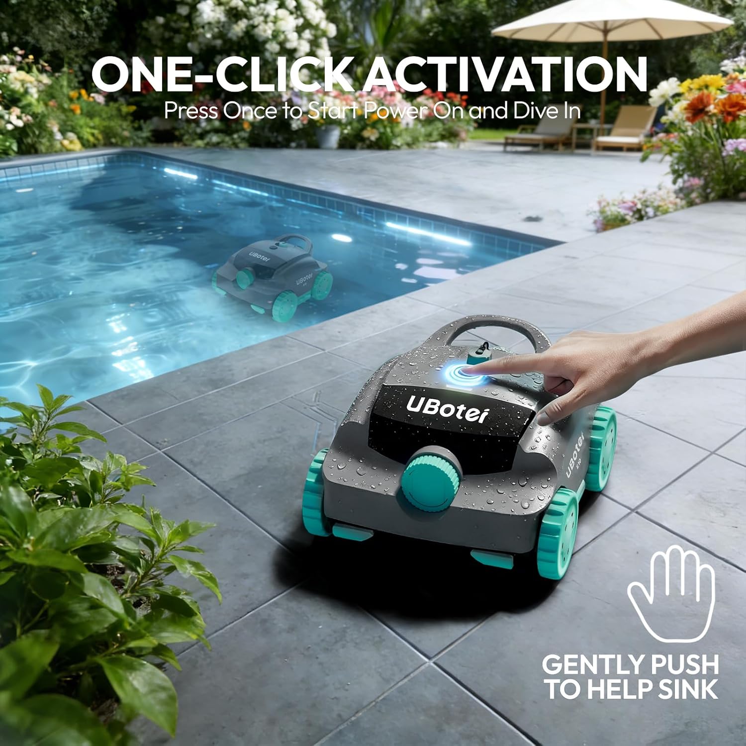 | Other Special Features of the Product | Cordless Design with Extended Battery Life, Better Pool Coverage Auto Back-and-Reapproach Technology for Edge-to-Edge Cleaning, Large Wheels for Powerful Obstacle Crossing, Intelligent Navigation with Auto-Parking, Superior Suction Power From UBOTER |