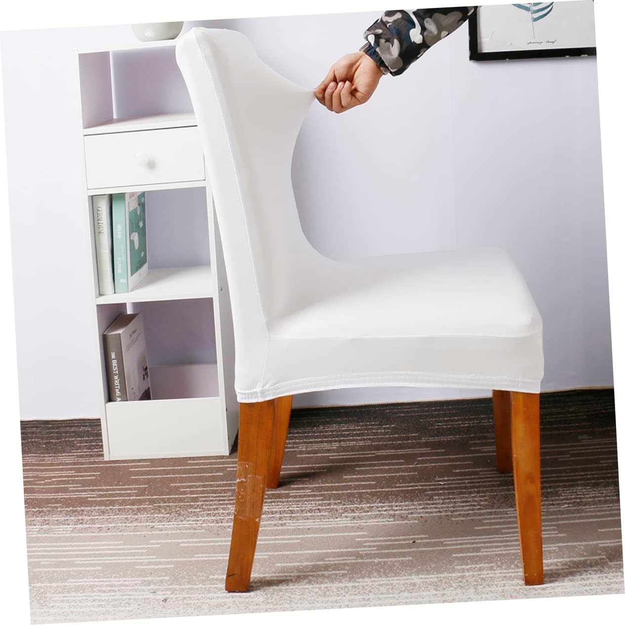 Package Include 3 x Chair Cover Characteristics - Size: About 45x50x0.5cm Stretchy Chair Cover. - Material: PU Simple Chair Case. - Color: White. - Use on various occasions, includes wedding, banquet, party, meeting, ceremony, etc Elastic Cover. - Never worry about spills again with these decorative yet practical chair covers Chair Cover. - Chair cover with elasticity, fit for most of dining room chairs, stacking chairs, banquet chairs, folding chairs Chair Protector. - Bright color to add a charm style for you chair and party. - Easy to assemble and dieassemble for water cleaning.Goods DescriptionChair Protector This chair cover is made of material, flexible enough for of chairs.Simple Chair Case Not only can protect your chair , wet and more, also can decorate your chair so well.Chair Cover With beautiful pattern, comfortable, wrinkle resistant, no ironing required, easy to wash