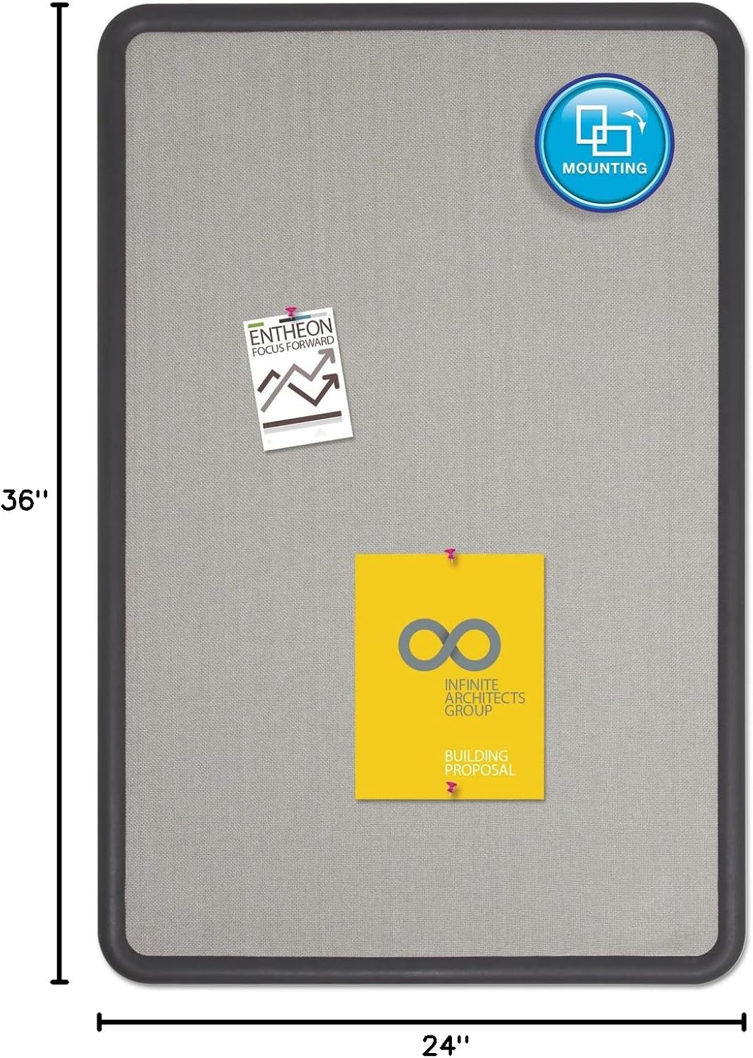 Product Description Energize messages and create an immediate communication center with a burst of color from the Contour Fabric Bulletin Boards. Textured, colored plastic frames surround a matching colored, self-healing fabric bulletin surface to brighten any room. Easy hanging system accommodates vertical or horizontal mounting. From the Manufacturer The Quartet Contour Fabric Bulletin Board is a colored plastic frame and a colored, self-healing fabric bulletin surface. Measuring 2 x 3 feet, this bulletin board's gray plastic frame and coordinating light gray fabric surface maximizes the impact of displayed documents. This bulletin board comes with an easy-to-use mounting system.