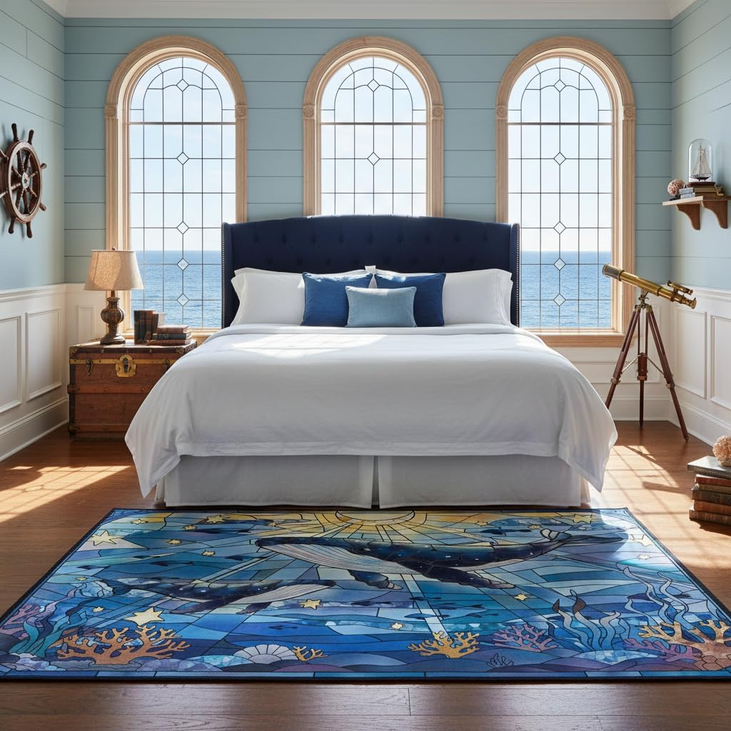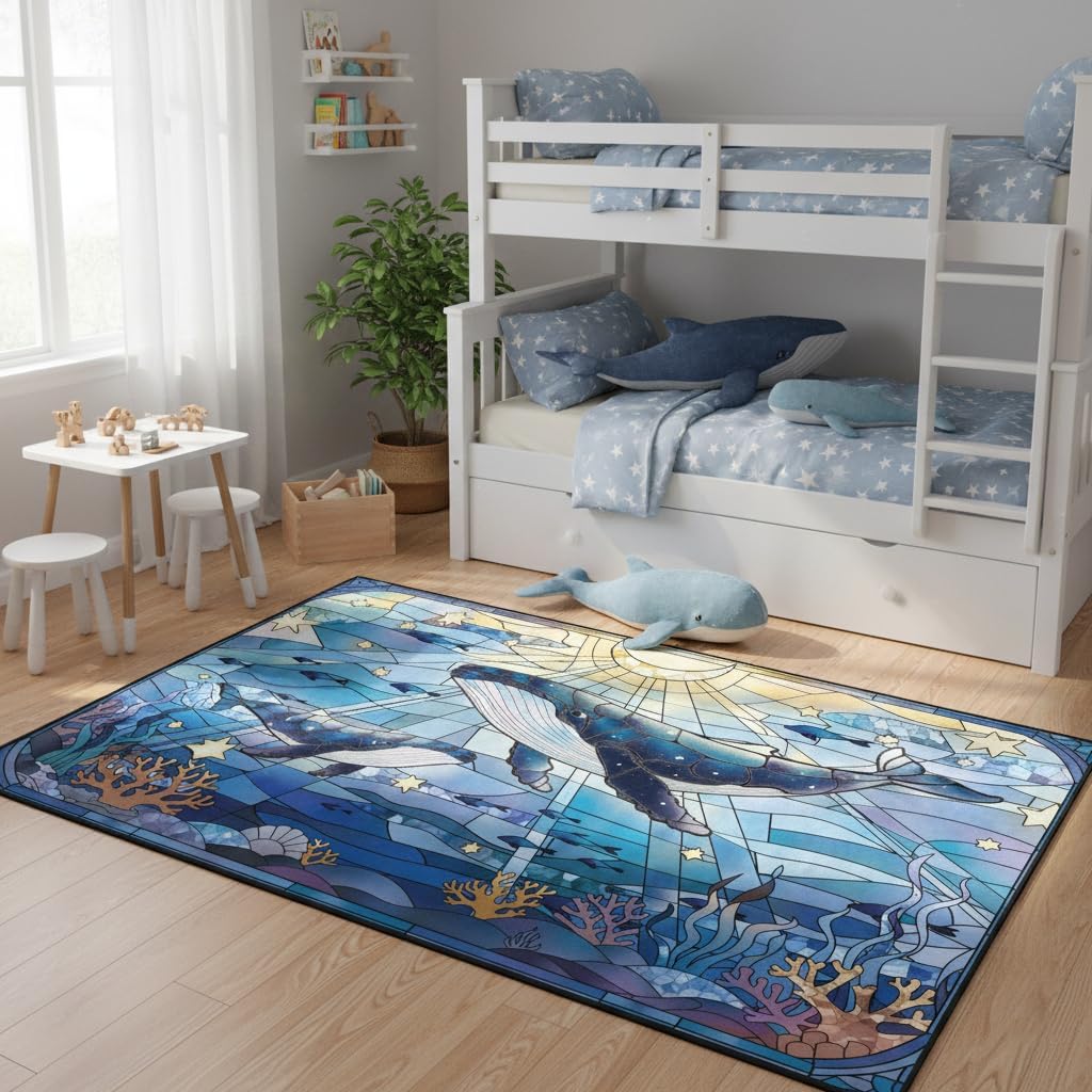 Bring timeless fantasy charm into your home with this rainbow colorful area rug with stained glass style & floral design! Designed for both style and practicality, our polyester rug combines softness, durability, and easy maintenance. The low-pile construction resists shedding and traps less dirt, while the fade-resistant floral print stays vibrant even in sunlit rooms. Machine-washable and stain-proof, it’s a lifesaver for busy families, pet owners, or anyone craving a hassle-free upgrade. The non-slip TPR backing protects floors and prevents accidents, and its versatile design transitions seamlessly from cozy bedrooms to chic living spaces. Note: For best results, avoid harsh chemicals and air-dry after washing.