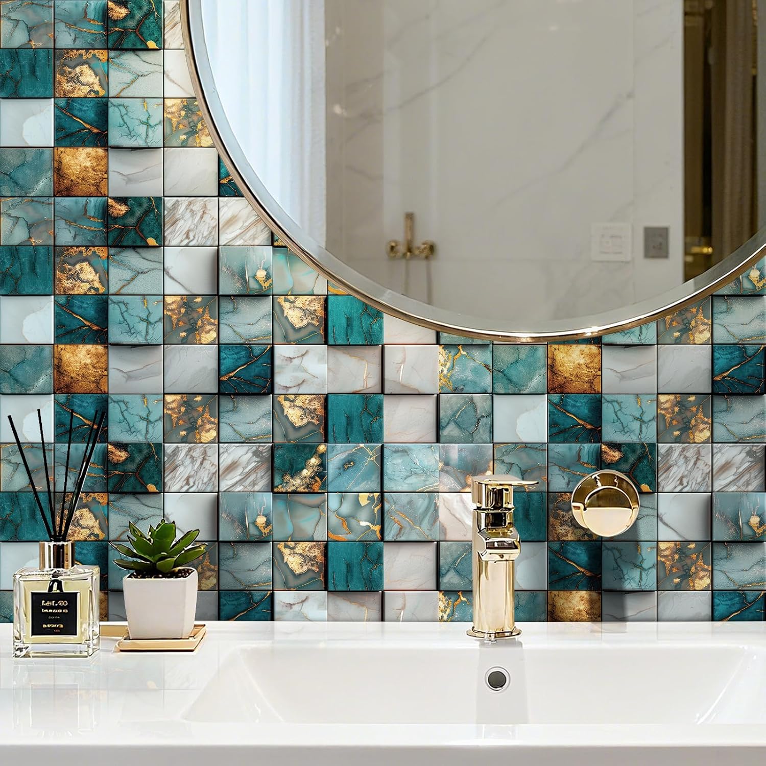 | Color | Teal Gold Marble Tile |