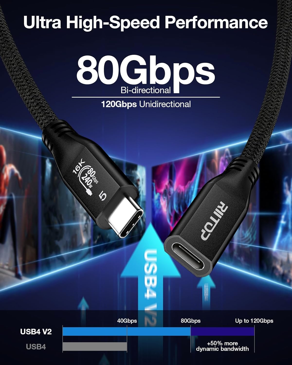 RIITOP 80G 240W Extension Cable for Thunderbolt 5 extension Cable [1.64FT]
