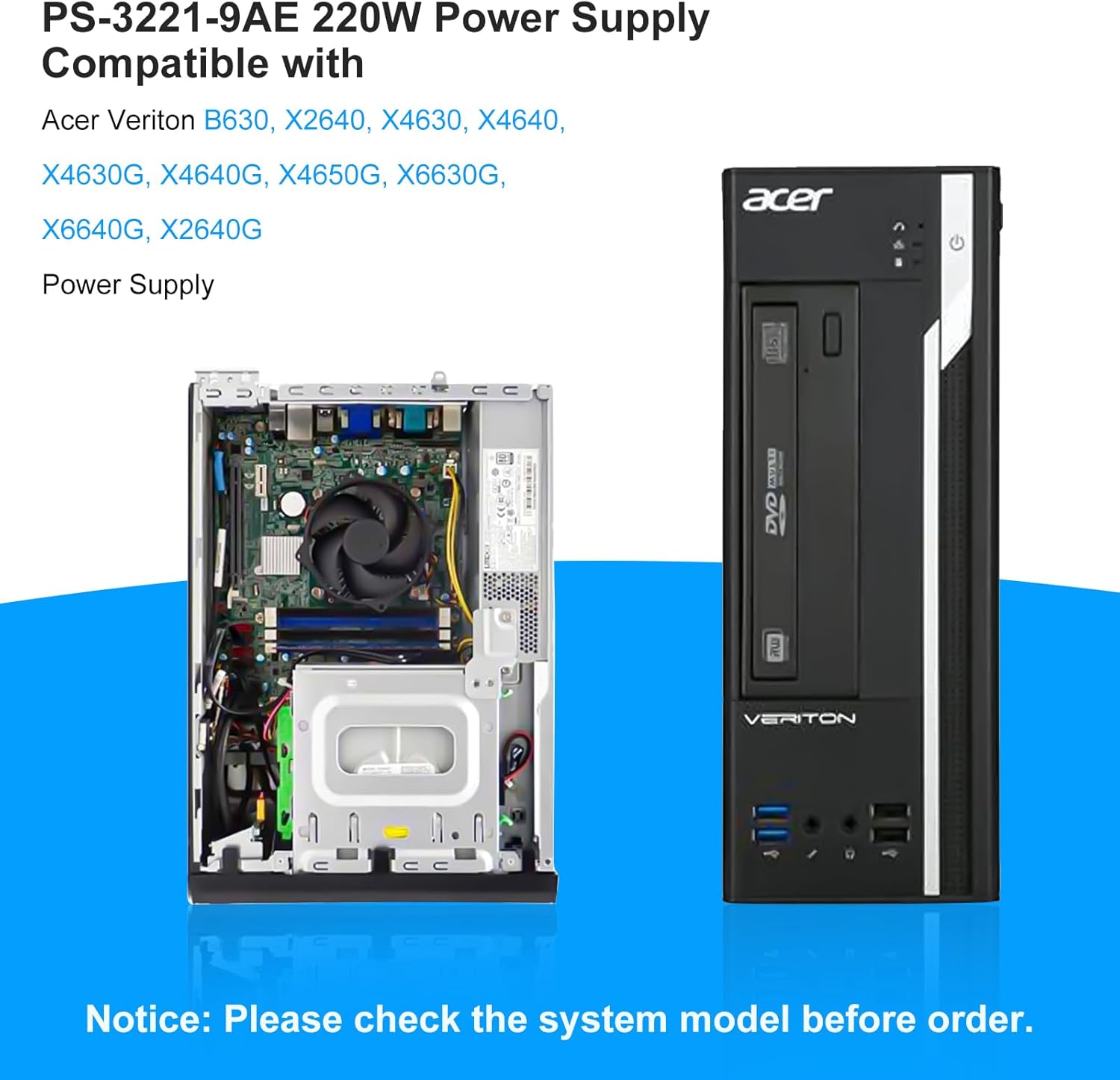| Compatible Devices | Compatible with Acer Veriton B630, X2640, X4630, X4640, X4630G, X4640G, X4650G, X6630G, X6640G, X2640G Power Supply |