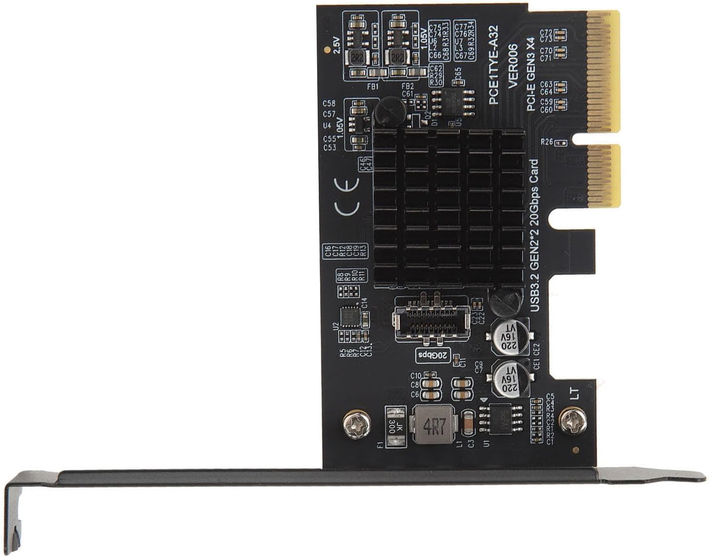 1. ASM3242 Main Control: This USB 3.2 Gen 2 expansion card adopts for ASMedia ASM3242 main control chip which ensures fast and stable transmission. 2. 20Gbps Transmission: This PCIe to USB 3.2 expansion card adopts Type C interface which supports up to 20Gbps data transmission. Support USB3.2 GEN2x2 standard, backward compatible with USB3.0 and USB2.0. 3. Widely Compatible: This PCIe to USB 3.0 Gen 2 card is suitable for 10, for 11 32/64bit, for OS X Laptop, for operating system. 4. Plug and Play: This USB3.2 Gen 2 card is plug and play, and additional installation is not required. The motherboard needs to support PCI E3.0 4X slots to achieve high speed transmission of up to 20Gbps. 5. Accessories Requirements: To maximize the performance, this PCIe USB 3.2 Gen 2 expansion card requires 20G Type E cable and 20Gbps HDD enclosure. Specification: Item Type: USB 3.2 Gen 2 Expansion Card Material: Printed Circuit Board Main Control: For ASMedia ASM3242 Product Interface: PCI E4X (Note That Type E Cable Needs to Support 20G Cable) Supported System: Suitable for 10, for 11 32/64bit, for OS X Laptop, for How to Use: Plug and play packing list: 1 xUSB 3.2 Gen 2 Expansion Card 1 x Bracket