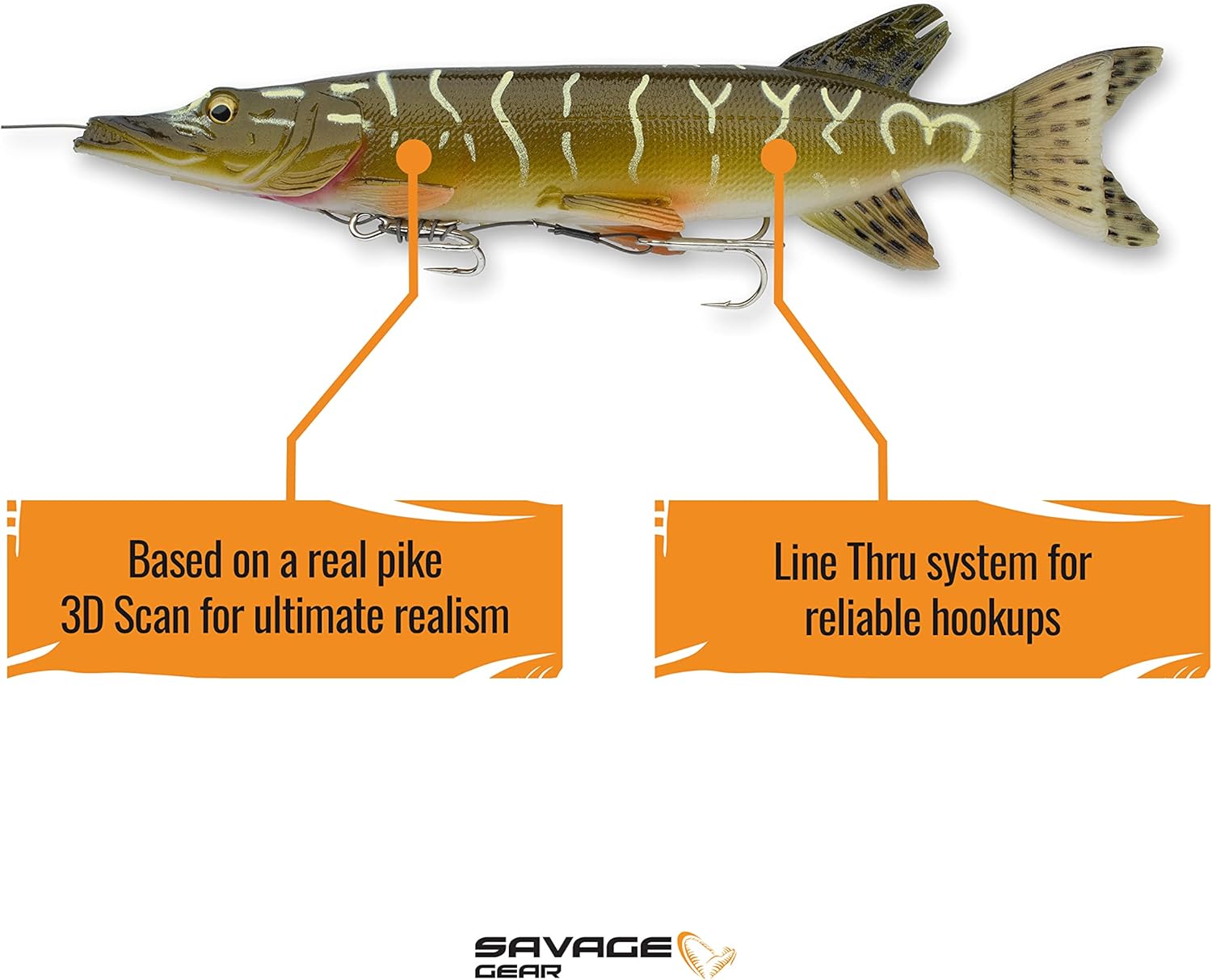 Gain an edge and convince big species that they're after the real thing with this swim bait that looks and moves like a real pike. Based on a 3D scan, the specially designed profile delivers a lifelike swimming motion to create authentic water displacement. Sensory elements like a scent-infused body enhance feeding responses and entice fish to strike. A cavity in the tail is perfect for the addition of a rattle. Savage gear is for anglers that live the savage lifestyle. Relentlessly pursuing the challenging bite and going where others won’t. Wading, kayaking and sawing their way into waters where the biggest and toughest fish hide. This is the heart of Savage gear. Big Adventure. Big Fish. Nothing else counts.