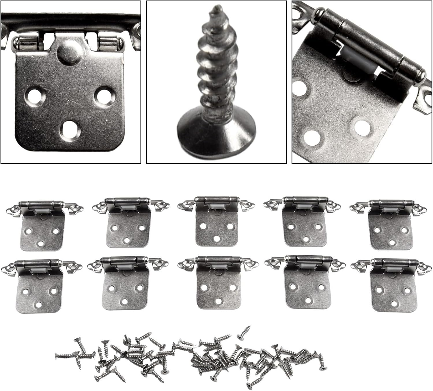 • 【Package Includes】Each pack includes 10 cabinet door hinges and 50 screws. These sturdy hinges have a long service life and can be reused, providing convenience and value for your cabinet installations.