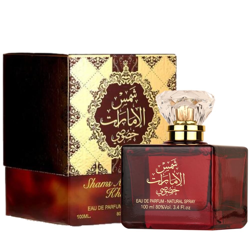 Shams Al Emarat Khususi is a refined fruity scent. It boasts notes of amber, rose, and sandalwood, with a cozy, oriental fragrance that embodies its sweetness and richness.