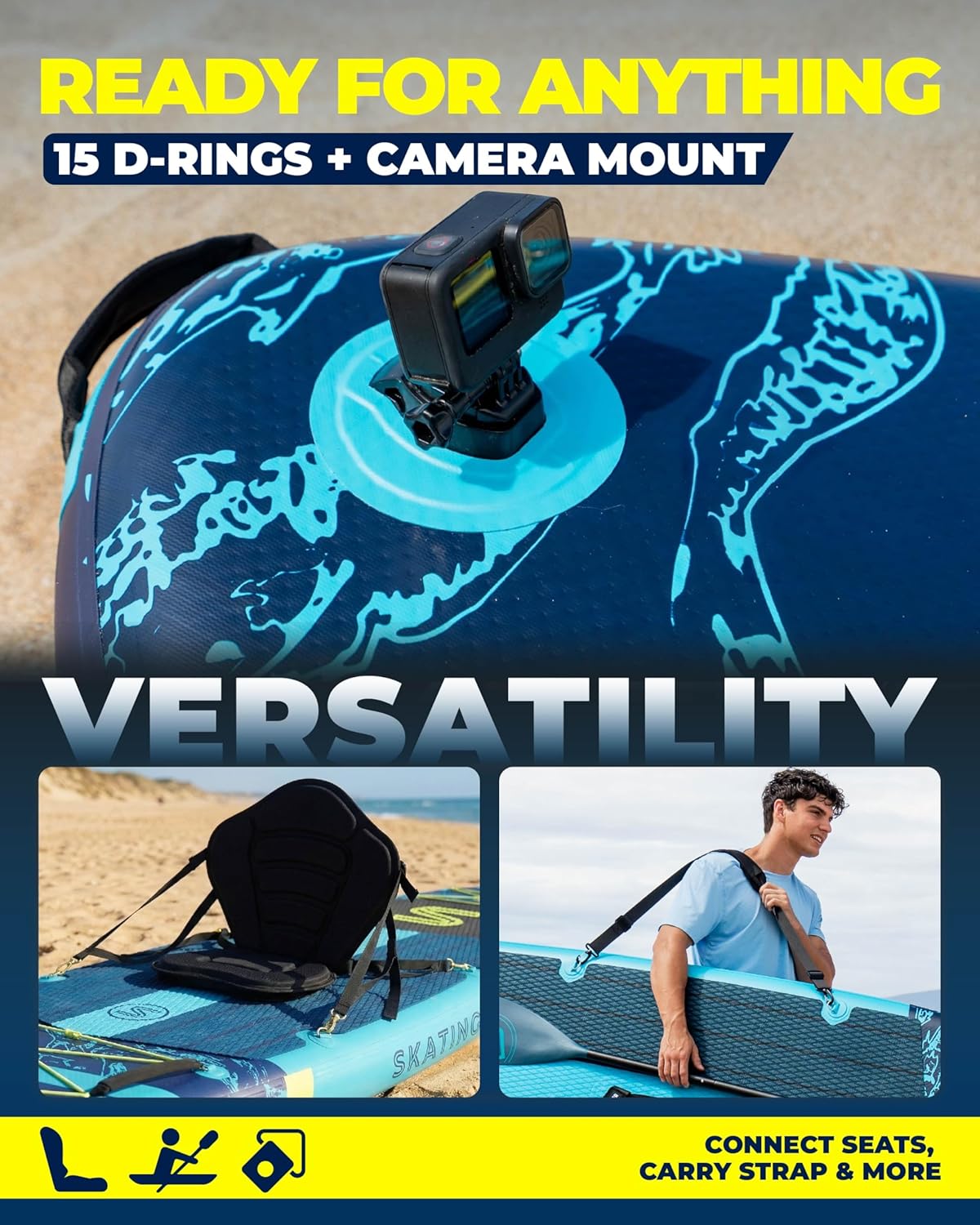 | Material Type | 5mm Marine-Grade Ethylene Vinyl Acetate (EVA), Elastic Bungee Cord, Foam Padded Handles, Military-Grade Polyvinyl Chloride (PVC), Zinc-Nickel Plated D-Rings |