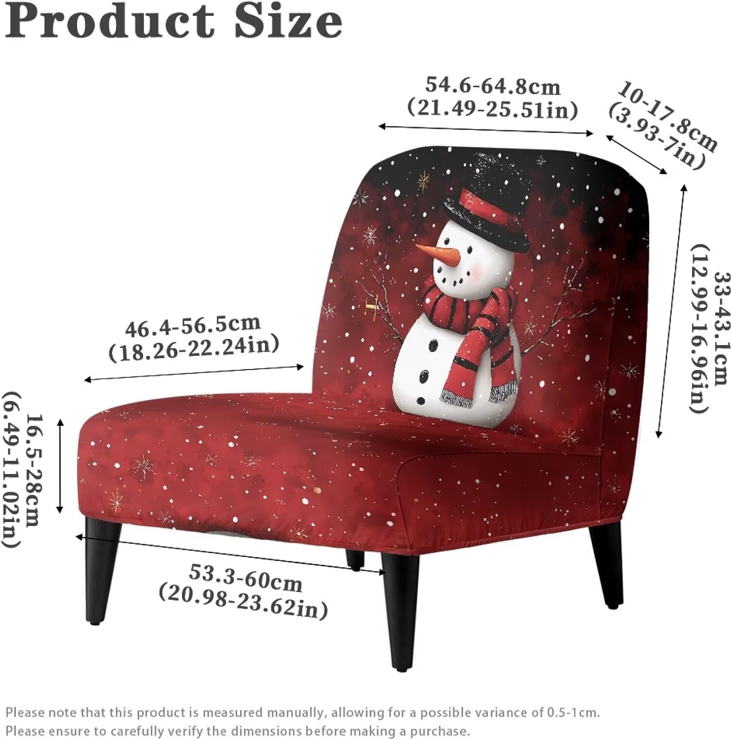 Features: Accent chair covers without arms, breathable, comfortable, Soft and stretchable, with thick elastic bands Specifications: Material: 92% polyester and 8% spandex Size: Chair Back Height: 13"-17"(33-43cm), Chair Back Length: 21.5"-25.5"(54.5-64.8cm), Seat Length: 21"-23.6"(53-60cm), Seat Width: 18"-22"(46.5-56.5). Please check the slipcovers for chairs product size before purchasing Package includes: Stretchy Armless Chair Slipcover 1 Piece Notes: Manual measurement, please allow slight errors on size. The color may exist a slight difference due to different screen displays.