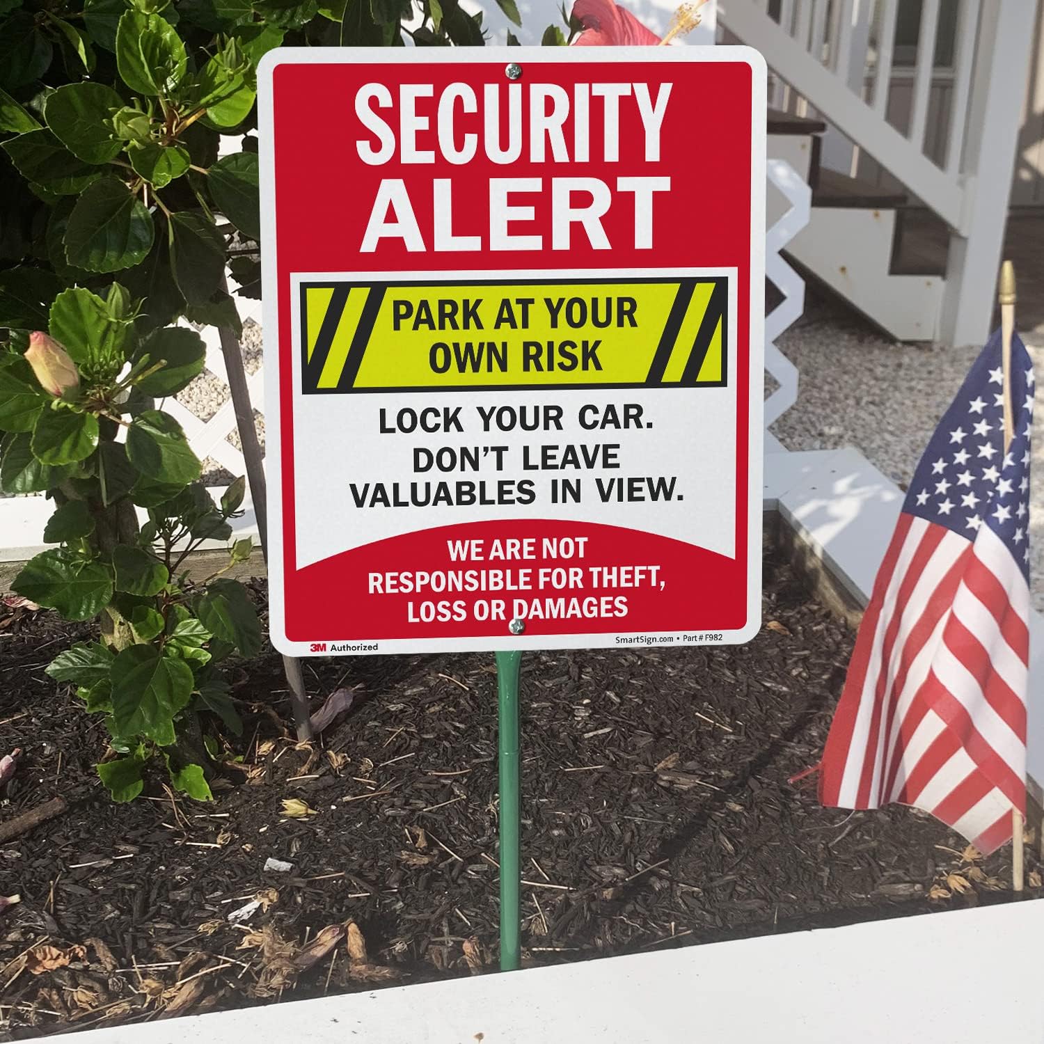 SmartSign 12 x 10 inch “Security Alert - Park At Your Own Risk, Lock Your Car” LawnBoss Yard Sign with 3 foot Stake, 40 mil Aluminum, Laminated Rustproof Aluminum, Multicolor, Set of 1