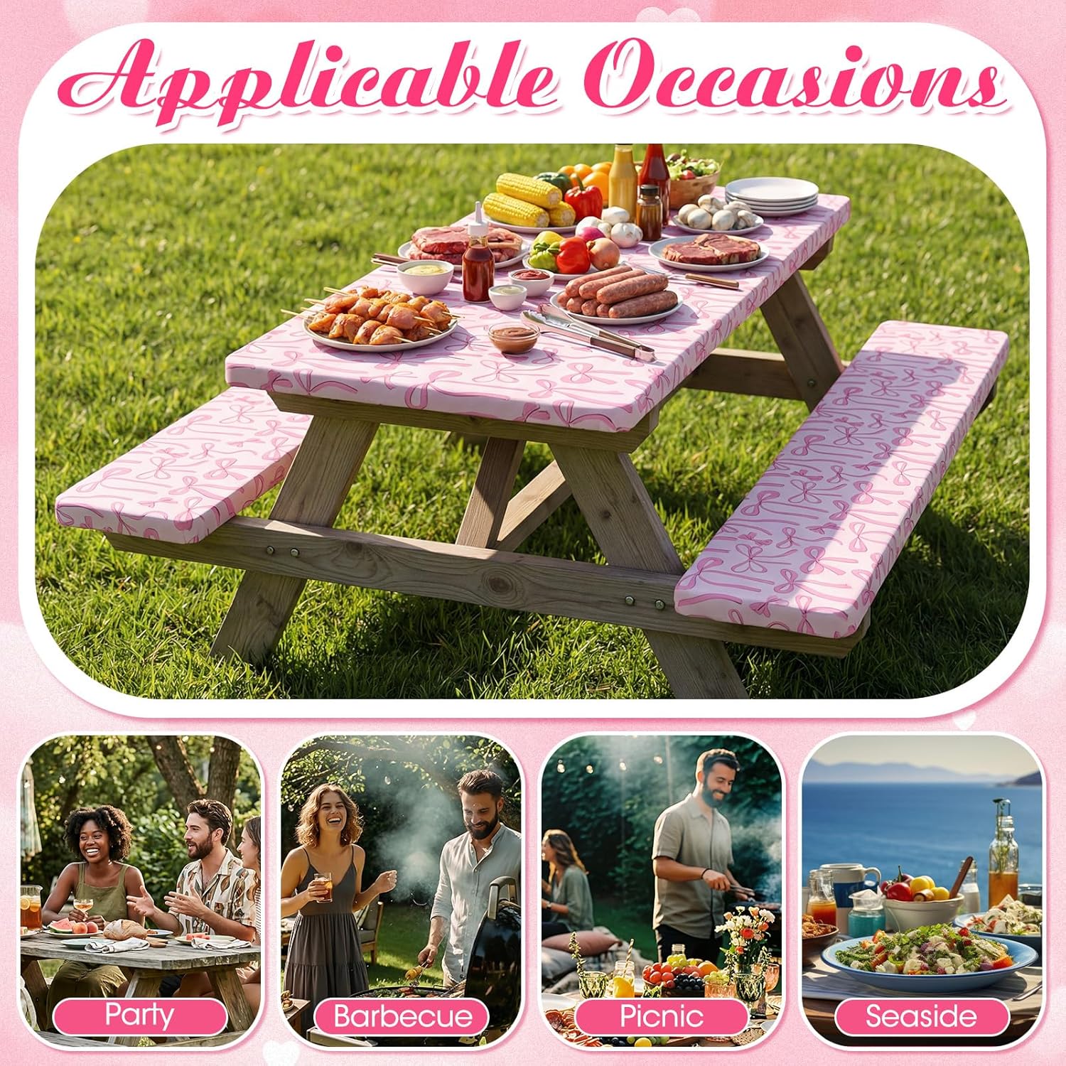 Features: Upgrade your outdoor dining experience Say goodbye to flying tablecloths and sticky, dirty park tables, the fitted cover set is your ultimate hack for a stress-free picnic. Designed for the modern camper and party planner, this lightweight set folds down compactly, fitting easily into any picnic basket or rv drawer. Whether you are hosting a backyard tea party or enjoying a sunset dinner at the campsite, set the mood in seconds with this charming, secure, and clean dining surface. Polyester vs vinyl: the better choice We understand the frustration of single-use plastics or stiff vinyl covers that peel after one season, that is why we upgraded to 160gsm high-density polyester. This fabric acts like high-performance sportswear: it repels water and stains but remains soft and breathable. Best of all, when the party is over, simply toss it in the washing machine. It comes out looking fresh, wrinkle-free, and ready for your next adventure. Specifications: Material: polyester Color: pink Size: Table cover about 30"x72"and bench covers about 12"x72" Package includes: 1 x Picnic table cover with bench covers Notes: Manual measurement, please allow slight errors on size. The color may exist a slight difference due to different screen displays.