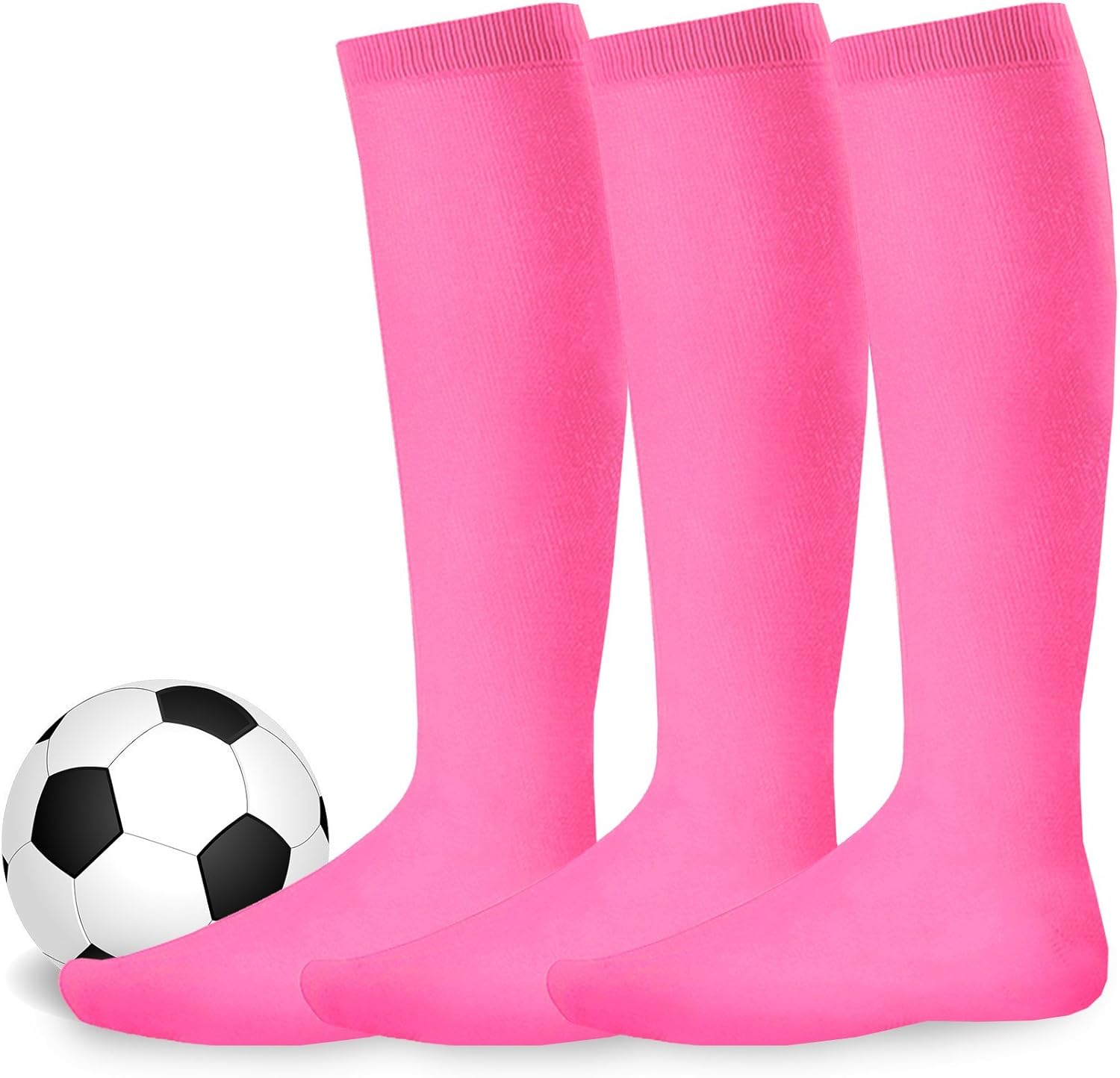 Athletic Sports Socks for Unisex Soccer Socks, Team Sports Socks with Cushion for Youth to Adult 3 Pair and 9 Pair Pack. Take the field by storm in these Unisex Soccer Socks. Whether you're on the soccer or rugby field, these acrylic tube socks. These are slightly stretchy socks. Order these 3 pairs or 9 pairs today and you will have your sports socks for the rest of the season! FACTORY DIRECT SELLER. Find your team color. Available Colors: White, Black, Pink, Light Pink, Red, Navy, Royal Blue, Burgundy, Hunter Green, Neon Green, Orange, Purple, Yellow, turquoise and more. Contents: 80% Acrylic, 17% Polyester, 3% Spandex. Machine washable. Size Guidelines: X-Small: Youth-Kids (Sock Size 5-7, Shoe Size Children 3-10 Youth) / Small: Junior Teens (Sock Size 7-9, Shoe Size Children 9-13.5, Adult 1-5) / Medium: Women (Sock Size 9-11, Shoe Size 6-9 Women) / Large: Men (Sock Size 10-13, Shoe Size 8-12 Men).