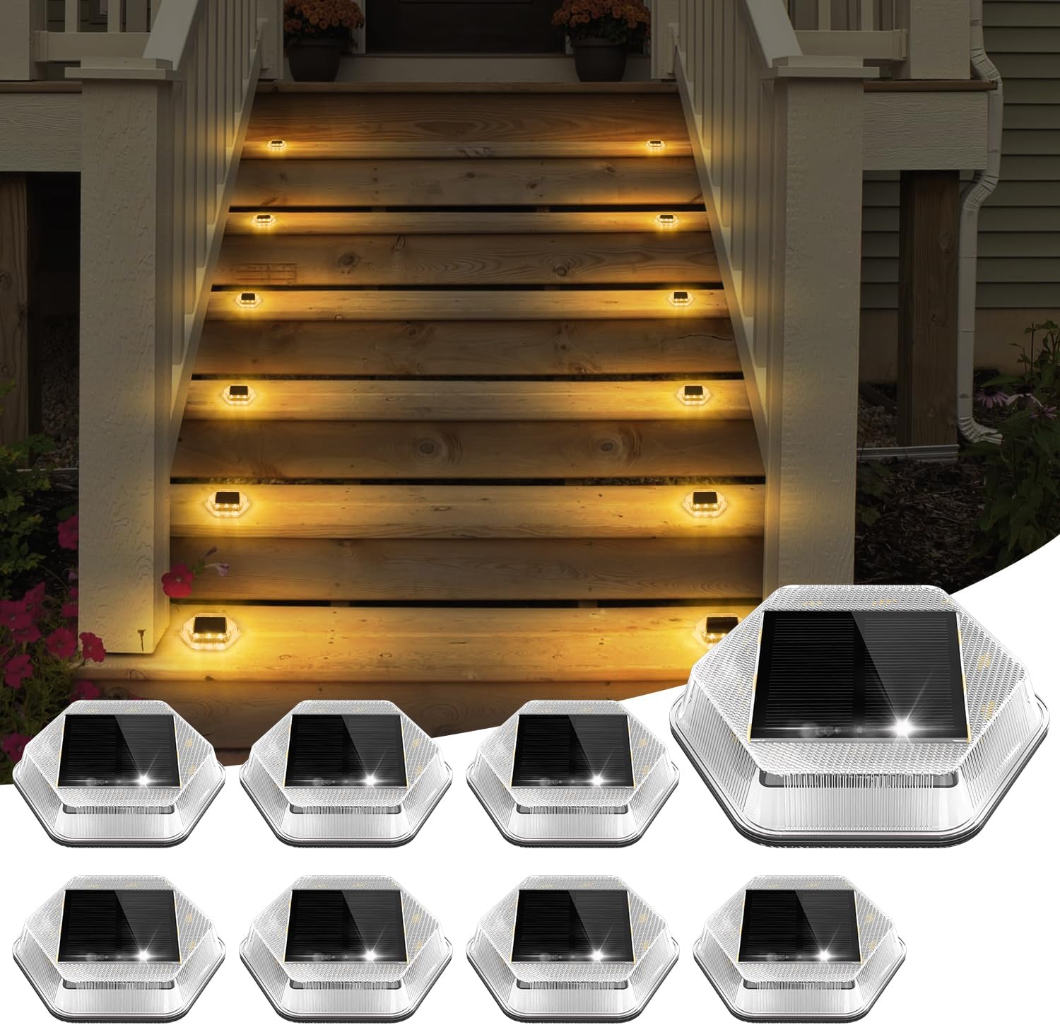 | Included Components | 4 x Solar Deck Lights, 16 x Screw Sets, 8 x Plastic Ground Stakes, 8 x adhesive, 1 x User Manual |