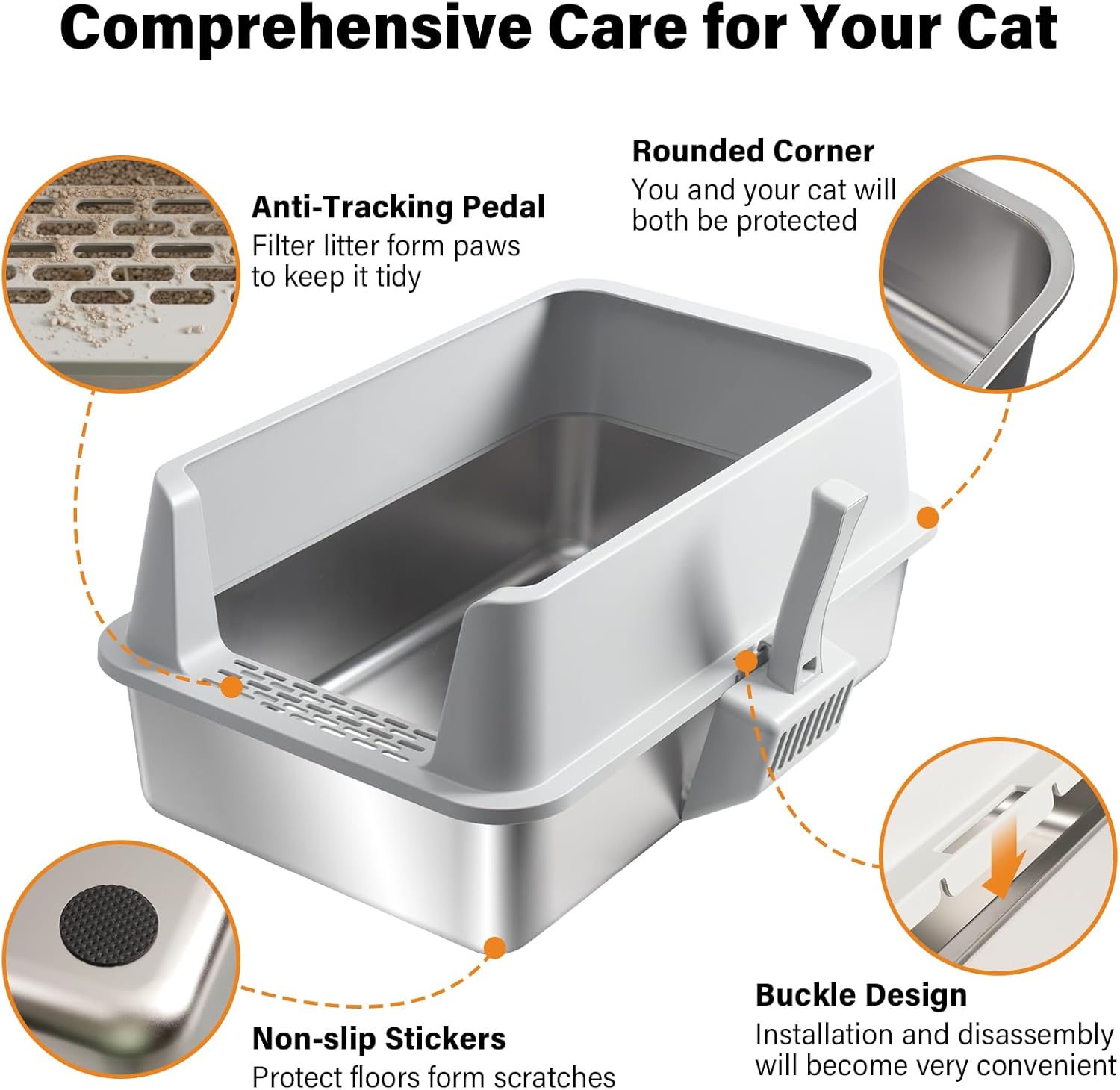 | Included Components | Stainless Steel Cat Litter Box with Lid*1, Plastic Cat Litter Scoop*1, Litter Trapping Mat*1 |