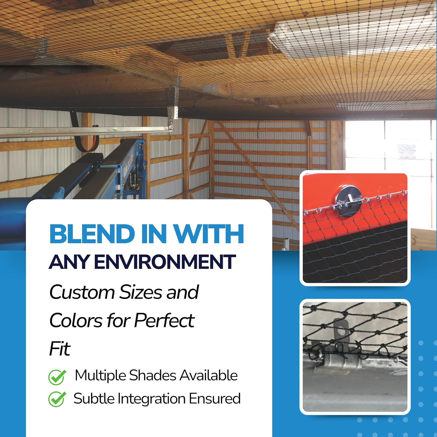 StealthNet is the world’s leading commercial bird netting product. Bird netting protects property by keeping out pest birds. Strong and durable, StealthNet bird netting is a pest bird control product for buildings, balconies, garages, barns, hangars, or other structures. Our anti-bird netting is a very effective bird control product that is nearly invisible. StealthNet is an exclusion bird repellent device. Bird netting is a humane bird control method. Choose the right size of mesh netting for the problem species: heavy duty netting like the 4" mesh bird control netting keeps out gulls and other large birds; 2" mesh pigeon netting keeps out pigeons; 1-1/8" mesh net excludes starlings, grackles, blackbirds, and similarly sized birds; 3/4" bird control netting keeps out small birds, such as sparrows and swallows.