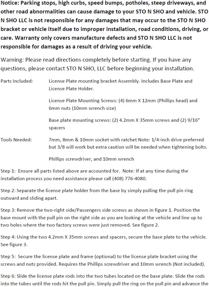 • This STO N SHO requires NO HOLES to be drilled for installation and comes with everything needed for installation, however, tools are required.