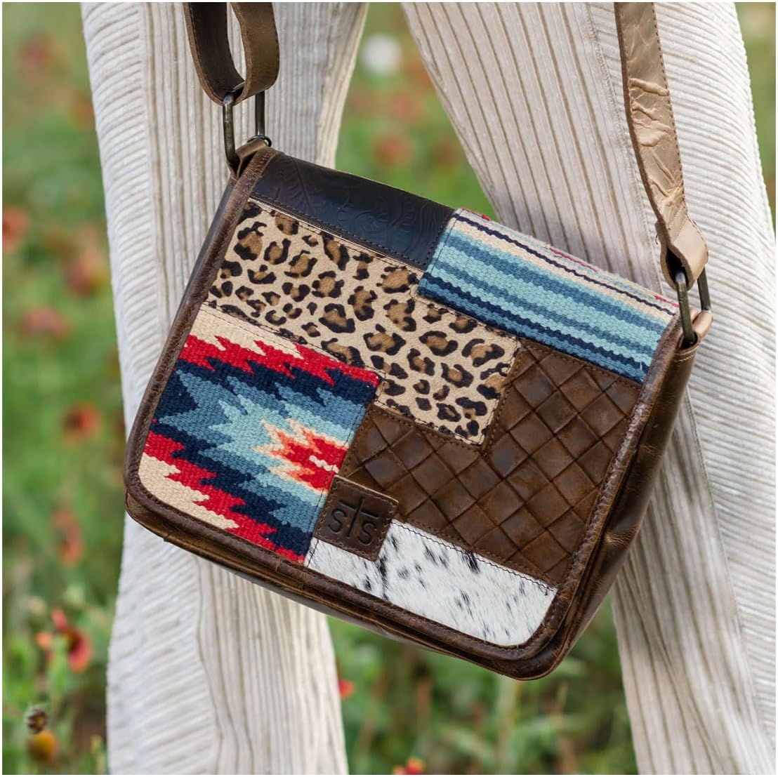 The STS Ranchwear Collection, by Carroll Original Workwear, is a collection of high quality leather apparel and accessories inspired by the ranch life. The brand values integrity, work ethic, family, and quality. This crossbody bag features genuine leather/cowhide/cotton blend, under flap: 5 interior card slots, 1 interior id slot, 1 interior slip pocket; 1 main compartment w/ 1 interior zip pocket, snap flap closure and much more as listed in our bullet points below. Keep your life better organized with this bag - crossbody.
