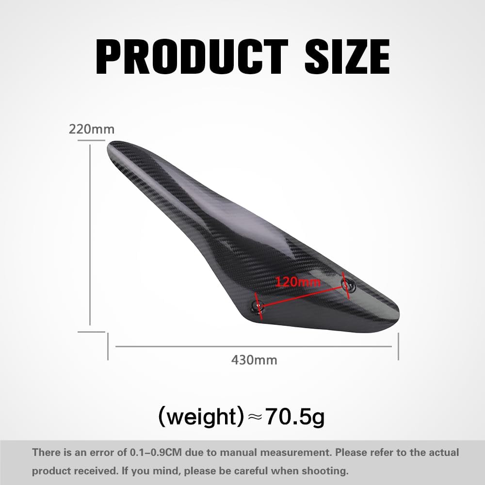 Prevents burns: The exhaust nozzle generates a lot of heat when the motorcycle is driving, the anti-scalding lid prevents riders or passengers from getting burned when accidentally touching the exhaust while riding the bike, and prevents clothing such as boots from being burned or melted when approaching the exhaust. - PROTECT VEHICLE PARTS & BAG: It can block heat radiation from the exhaust pipe, prevent heat damage to plastic parts, rubber parts, etc. near motorcycles, and prolong the life of those parts. At the same time, you can avoid damage to your luggage due to contact with high temperature exhausts. - PROVIDES MECHANICAL PROTECTION: The anti-scald lid is usually made of sturdy materials such as stainless steel, which provides mechanical protection for the exhaust pipe against scratches, dents and other damage during the driving, which can help keep the exhaust pipe look and structure intact. - Improve aesthetic: Some anti-scalding caps are made of carbon fiber and other materials such as carbon fiber and other materials that will improve the overall beauty of the motorcycle after installation and make it look more texture and personality, and it is better combined with the motorcycle shape and enhance the visual effect