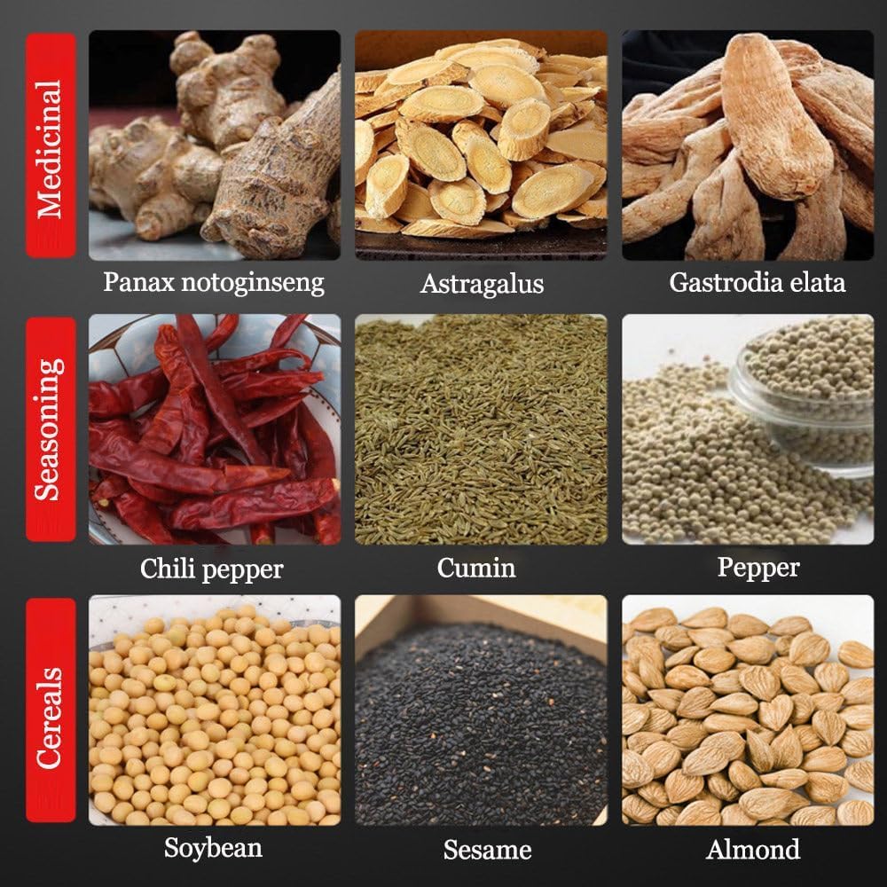 Features:- Thickened sealing strip, Stronger sealing propetry, not easily leak powder.- 304 Stainless steel Food Grade Material- 5 Minutes Timer- High Speed Motor- Triples blade: grinding blade, rotary blade, and powder removal blade- 270° Rotation Electric Grain Mill Grinder- Overload protectionPackage Included:1 * Grain Mill Grinder Electric1 * Brush1 * Precision mesh3 * Blade1 * Instructions for useTips:1. The smashing materials is not exceed half of the smashing groove.2. The smashing materials should keep dry, no moisture and grease.3.When it starts up, please shut off the power supply immediately if the blade is stuck by the smashing materials and the motor does not run (buzzing noise occurs) to avoid burning the motor, and then remove the blocks, check the fuse and restart the machine.4. Rest the machine for 5-10 minutes after every 3 minutes operation.5. Do not clean the machine with water; you can clean the machine by cloth or brush.6. During using, do not open the upper cover or put your hands.7. You must shut off the power supply if the motor does not run.8. Do not freak out by the first loud sound of the machine when it begins to work, it is normal.9.Grinding time: grains 30s, spices 20s, herbs 40s.