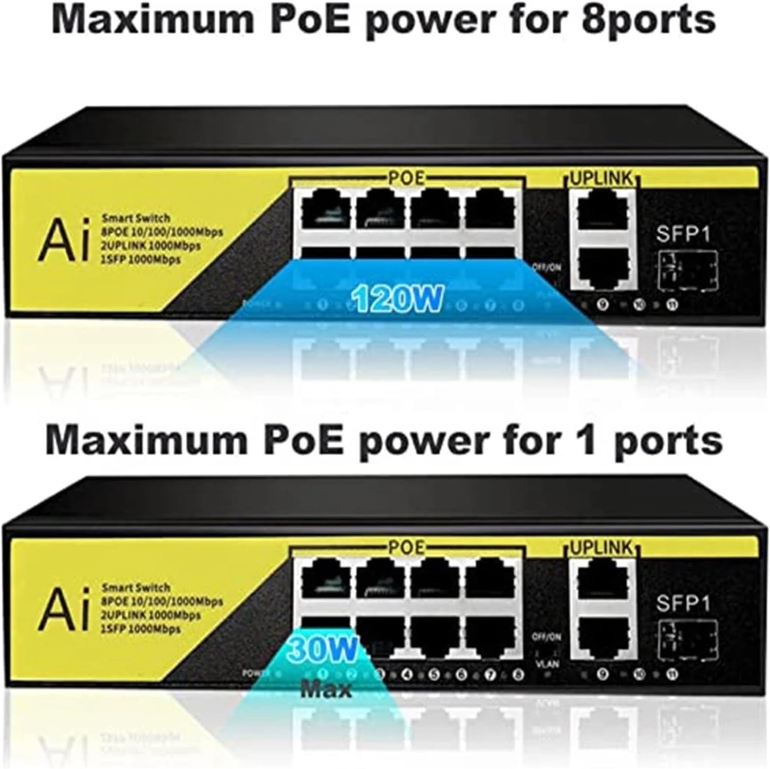 HubsSwitch POE Gigabit Link 11 Port 100/1000Mbps Fast Ethernet POE Switch with VLAN Camera Power SupplyProduct DescriptionThis is a 52V AI standard POE switch independently designed and developed by IERONLINK Tech to meet network power supply needs.Using the latest high-speed Ethernet switching chip, it has extremely fast data processing capabilities, improves smooth data transmission performance, and has a power supply network port and an RJ45/uplink port. Among them, all RJ45 ports support network cable power supply.Function DescriptionSafety independent port and current protection functionCableType: 10BaseT 3 or more twisted pairs (not supportedPower supply); 5 or more 100Base-TX/100Base-TX twisted pairs.Software specificationsCommunication method: supports half-duplex and full-duplex.Exchange method: store and forwardData signaling rate: Half-duplex modePOE standard: IEEE802.3af/at, each PoE port MAX 30W; address space: 8KAmbient temperature:Operating temperature 0 to 40Storage temperature -40℃ to 70℃Package Contents1*POE switch1* power adapter1* English installation guide