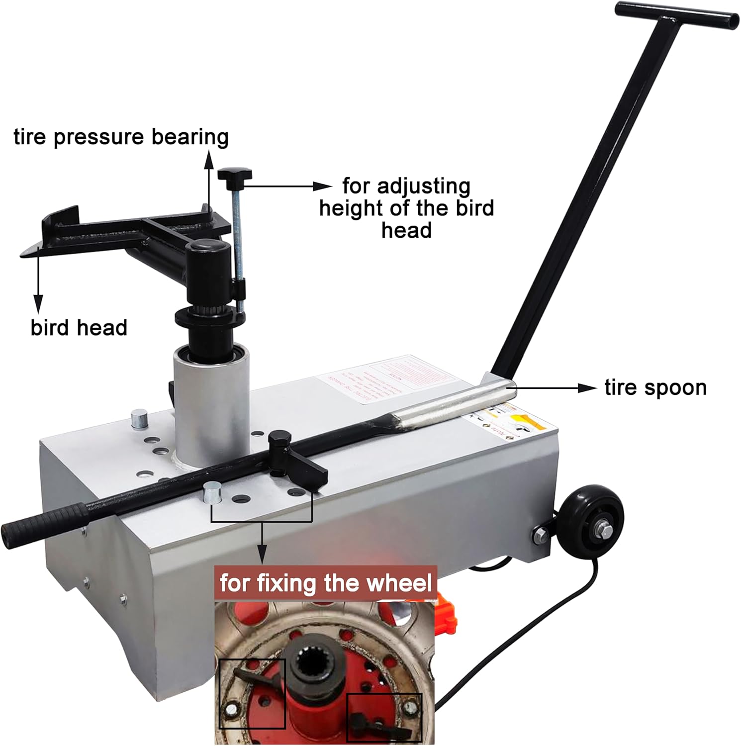 Parameters Voltage: 110V Motor power: 4KW Applicable tires: disassembly and assembly of R16 R17-9-19.5 R22.5 all series tires Rotation speed: 4 times/ min Controller battery:AAA battery*2 (This unit does not come with batteries.)