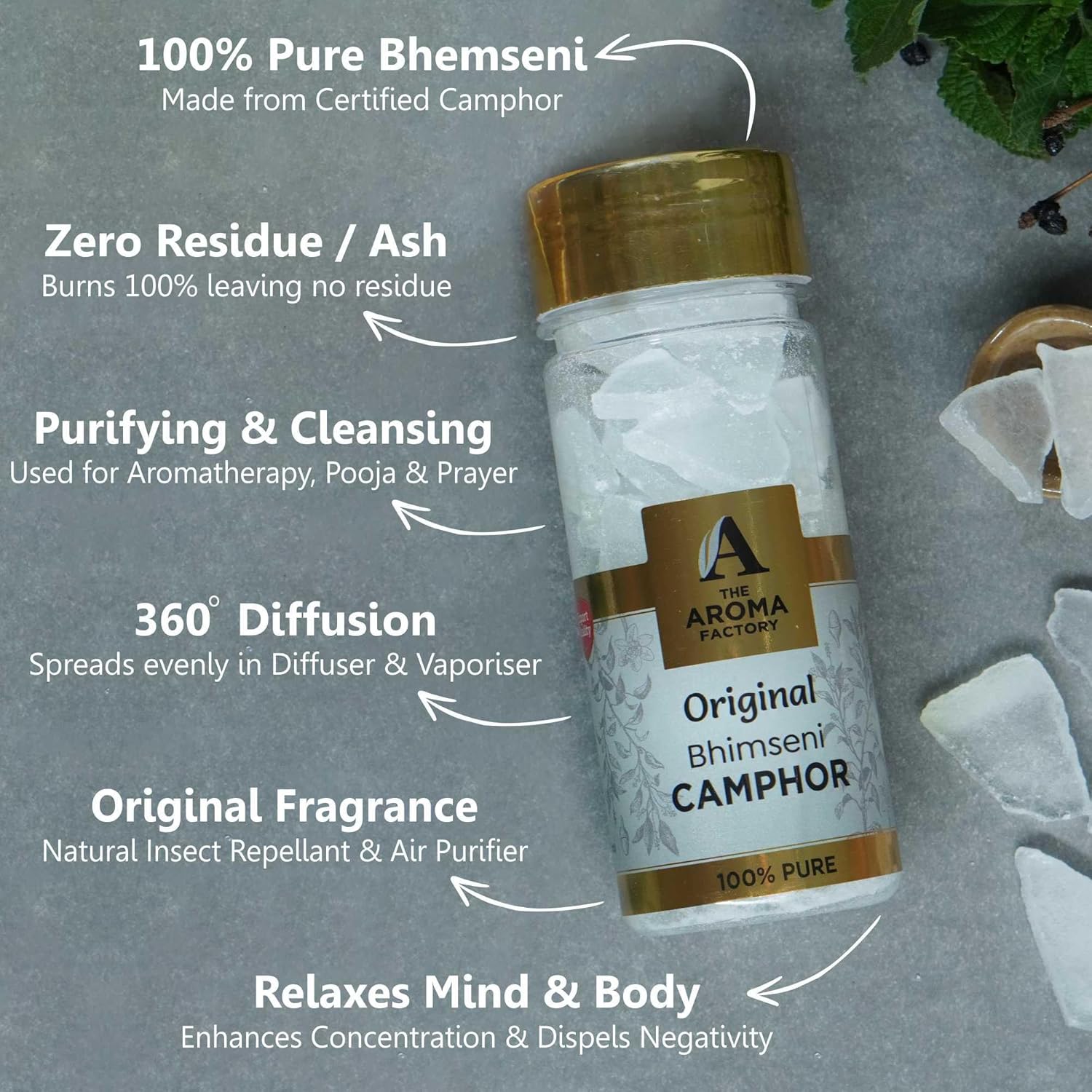 Product Description The Aroma Factory's 100% Pure Bhimseni Camphor Fragrances Pack brings a refreshing and aromatic experience to your space. With three distinct scents in one pack, you can enjoy a blend of traditional and modern fragrances. The Bhimseni Camphor helps purify the air, while the Rose scent brings a floral elegance, Kesar Chandan offers a calming and earthy aroma, and the Citrus Lemon fragrance adds a zesty, energizing touch. This pack is ideal for creating a soothing ambiance in your home, office, or any living space. Manufacturer Contact Information Panjon Limited