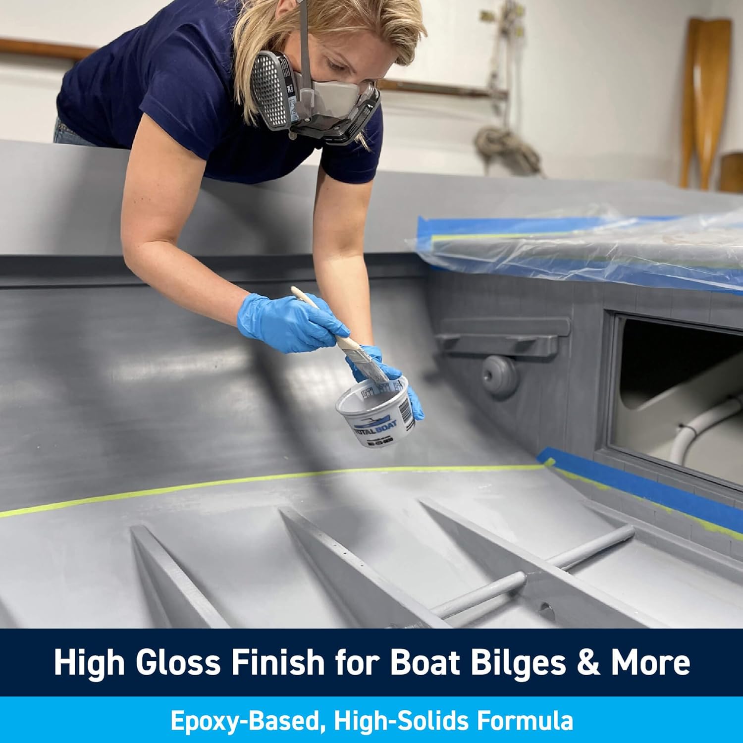 TotalBoat TotalBilge premium bilge paint is ideal for those greasy, grimy, humid places on your boat exposed to the harshest conditions and the hardest wear, especially the bilge. This epoxy-based, high-performance alkyd resin marine paint is easy to apply by brushing, rolling, or spraying. It provides a long-lasting, rock-hard, glossy finish that's resistant to all the nasty things that can plague not only bilges, but engine rooms, bulkheads, chain lockers, lazarettes, and V-berth stowage areas. We're talking diesel fuel, engine oil, acids, antifreeze, grease, grime, growth, heat, humidity, and solvents. TotalBilge's hard-wearing, abrasion-resistant finish provides excellent protection against the damage and staining that can occur when chemicals, oil and sludge get absorbed into wood or fiberglass. A clean, freshly painted bilge is not just for looks - there's also a practical side. A clean bilge lets you see problems such as leaking fuel and oil, and fix them before they get worse. Besides making it easier to find problems, our white bilge paint also makes it easier to find stuff that accidentally gets dropped into the bilge, such as tools and car keys. Our TotalBilge gray bilge paint is the lightest shade of gray available. Both colors offer superior opacity for excellent coverage and ability to hide previous stains on fiberglass, primed aluminum, primed steel, and wooden boats. The durable, high-gloss finish is also easy to keep clean - just wipe away the grease and grime with a cleaning and degreasing product such as TotalBoat Eco Solvent. TotalBilge is available in Quart and Gallon sizes, in your choice of Gray or White. Compare to other bilge coat paint products such as Interlux Bilgekote, Pettit EZ Bilge Paint, and Epifanes Bilge Paint. All TotalBoat products are designed for boaters, by boaters, to provide great value and great results. 100% made in the USA.