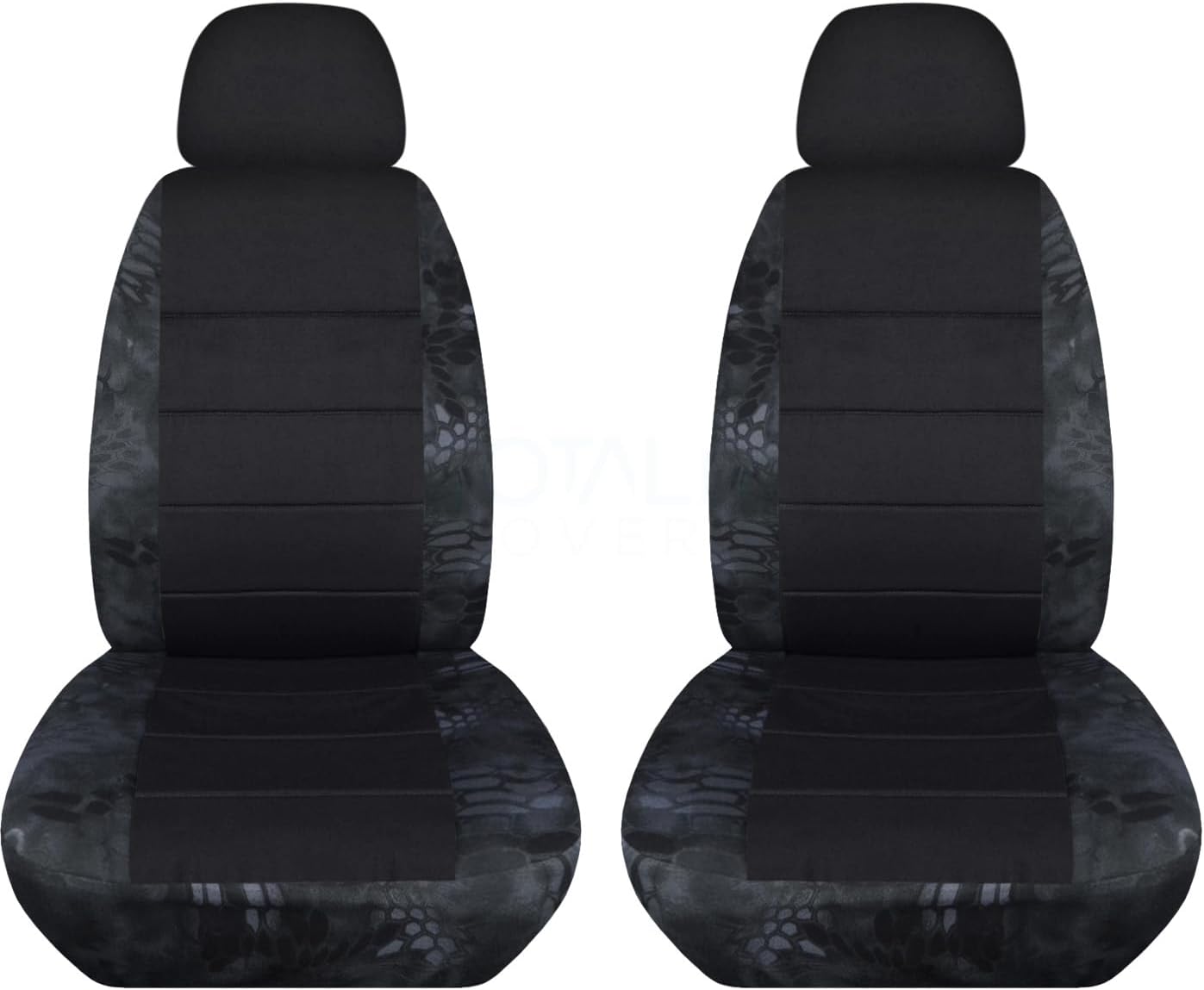 A set of 2, front, brown tree camo and black car seat covers with separate headrest covers. Be sure to visit our storefront ("Totally Covers") where you can find the largest selection of seat covers, to satisfy even the most demanding of tastes. If you can't find what you are looking for, please contact us ("Totally Covers") We can make seat covers for ANY car, truck, van, RV or SUV in a variety of 145 colors and prints, and even add your name/text and logo/design on them!
