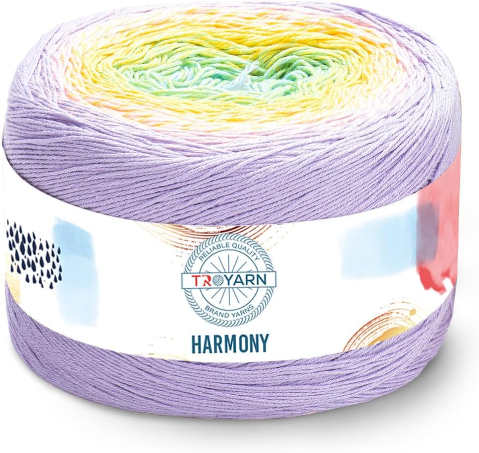 Vibrant Multicolor Design: Eye-catching rainbow hues make this yarn perfect for creating stunning crochet and knitting projects, especially for spring and summer.Soft Cotton Blend: Made with 55% breathable cotton and 45% durable acrylic for a lightweight yet sturdy finish, ensuring comfort and longevity.Generous Yardage: Each skein contains 250g (8.8 oz) and 1094 yards (1000 m) of Fine (1) weight yarn, perfect for larger projects without frequent joins.Versatile Crafting Yarn: Ideal for various projects, including baby blankets, shawls, summer tops, scarves, and home decor items.Durable & Easy to Work With: Combines the softness of cotton with the strength of acrylic, making it suitable for beginners and advanced crafters alike.Perfect for Warm Weather Projects: Lightweight and breathable, this yarn is designed for crafting garments and accessories for warmer seasons. Projects.Vibrant Colors: Available in a wide range of colors, perfect for adding a pop of natural beauty to your crafts.Lightweight & Flexible: Easy to work with, this yarn is lightweight yet durable, making it suitable for both small and large projects. Perfect for Eco-Conscious Crafters: A sustainable choice for those who prioritize environmentally friendly materials in their creations, great for Beginners & Experts Alike: Suitable for all skill levels, from DIY enthusiasts to professional artisans.Suitable for needle size Needle Size: 5- 5.5 mm, 6 - 5 UK, 8 - 9 US or Crochet Size: 6 mm, 4 UK, J-10 US. CERTIFIED, DURABLE, AND ECO-FRIENDLY: The yarn is CERTIFIED as STANDARD 100 by OEKO-TEX to be FREE from Harmful Chemicals and Artificial Synthetics.
