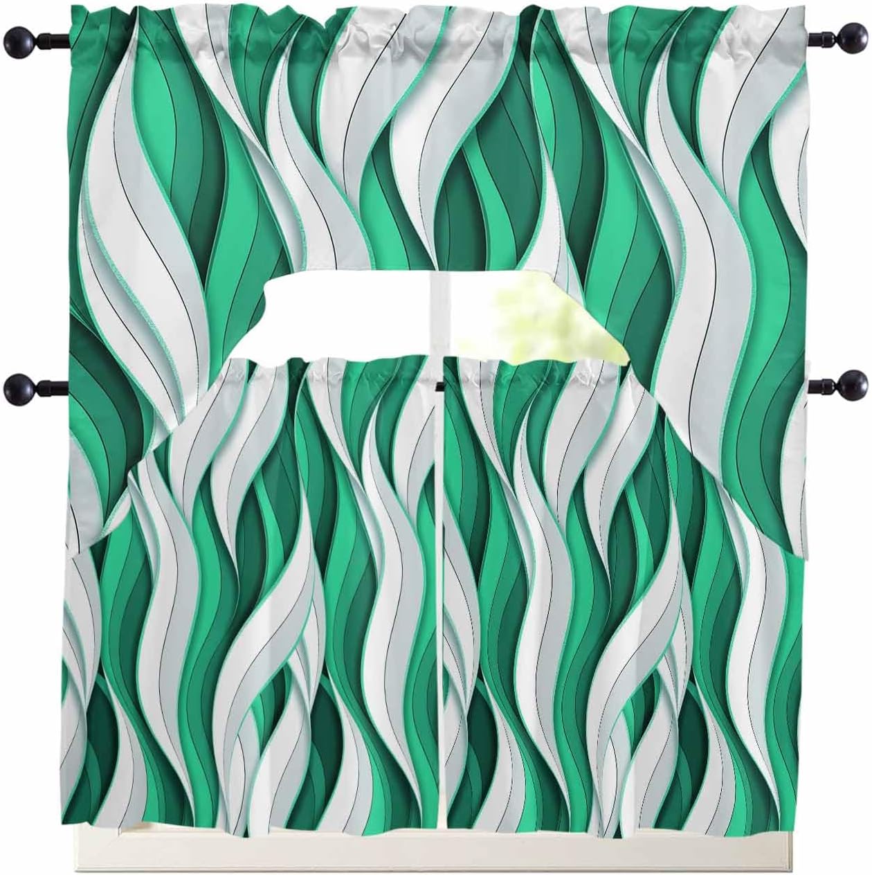 Widely Used: Our universal swag and tier curtain set is highly recommended by many customers as home decoration items.Beautiful and practical rideaux de chambre decoration are not only used in kitchens, bedrooms, dining rooms, living rooms, bathrooms, but also match other occasions, such as home office, laundry room, kids room, nursery, balcony, classroom, pet room, guest room, playroom, study room, washroom, coffee shop, cafe shop and more.Ideal Gift: Are you still worried about what gift to give for Christmas, Halloween, Thanksgiving, Independence Day, Mother's Day, Father's Day, Housewarming, Valentine's Day, St. Patrick, Easter, New Year? Why not take a look at our charming kitchen cafe curtain set, classic designs perfect for gifting to family, friends, colleagues and neighbours, etc.Various Styles: Our window drapery can perfectly match the style of your home.We have retro pastoral style, country farmhouse style, simple modern style, European aristocratic style, romantic French style, etc.Optional Colors: Bright colors are an important part of kitchen curtains sets for windows clearance.We have black, white, grey, red, brown, silver, beige for adults and pink, green, orange, blue, yellow, rainbow, multi-color for kids.Tip: Due to everyone uses different light or monitors, there may be a slight error in the color of the window curtain panels. Don't affect the beauty and use of the product.Just rod pocket curtains, no rods.