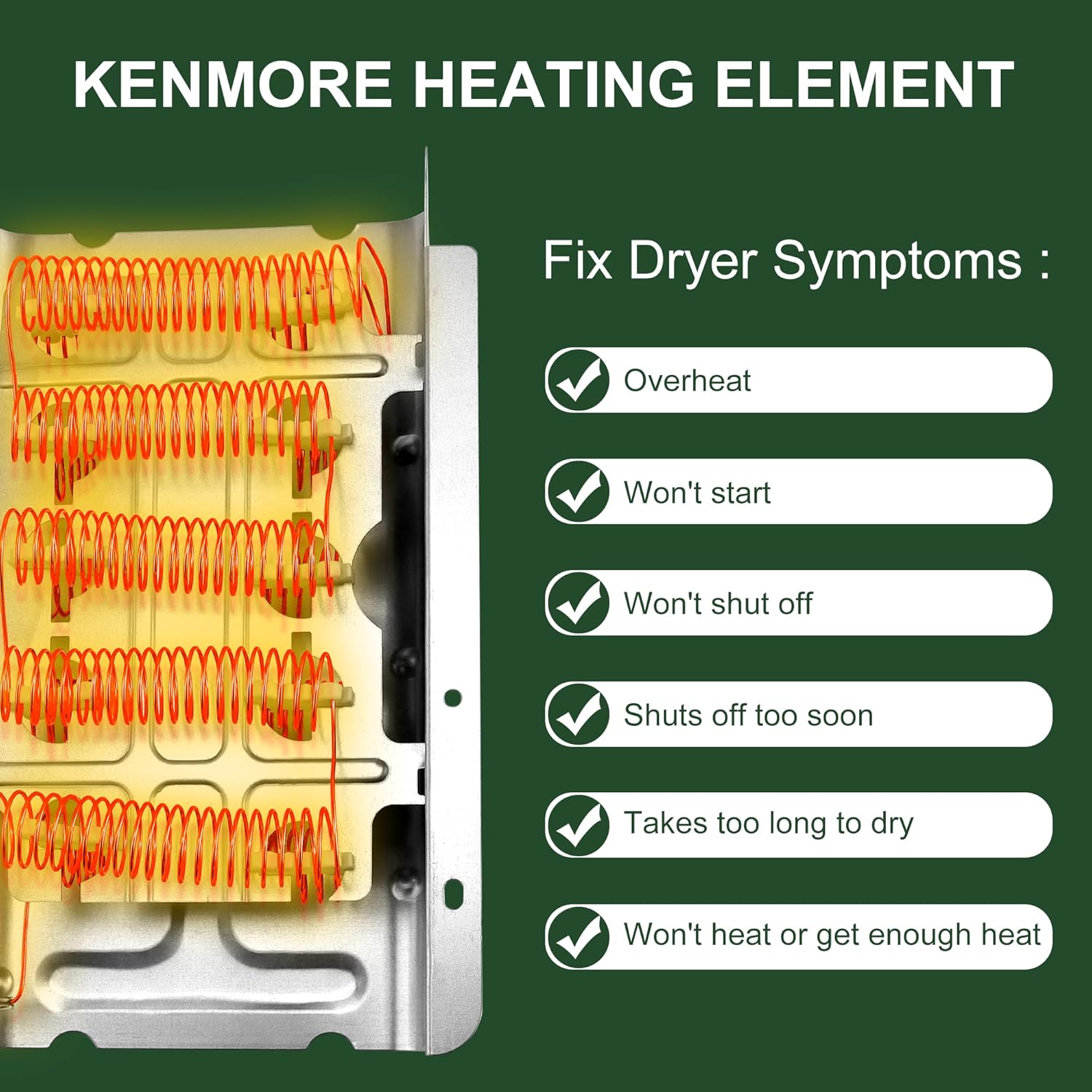| Included Components | 1X279838/3403585 dryer heating element;1X 3392519 dryer thermal fuse;1X 279816 Dryer Thermal Cut-Off Kit;1X3387134 dryer high-limit thermostat1X 3977767 dryer thermostat;’1X 3977767 dryer thermostat; |