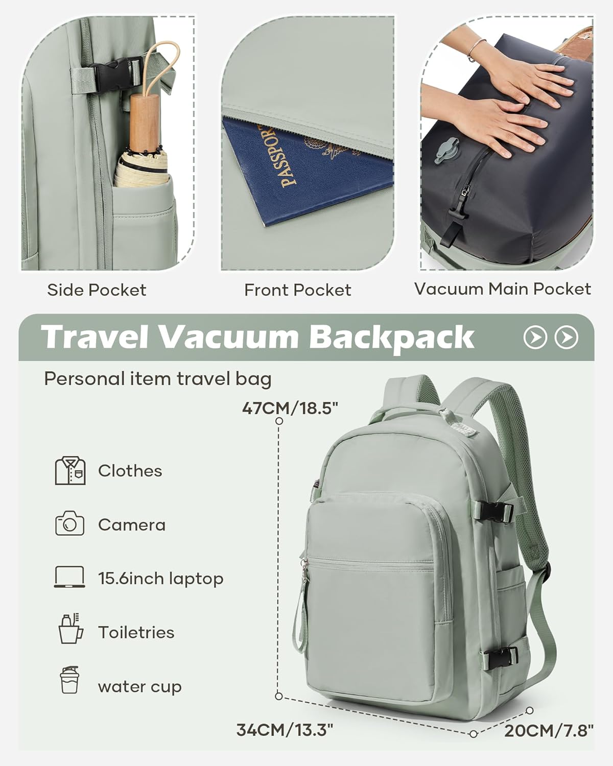 Vacuum Backpack With Pump,Travel Laptop Backpacks For Women Men,Airback Backpacks With Vacuum Compression Bags Seal Packing,Carry On Backpack, Personal Item Travel Bag