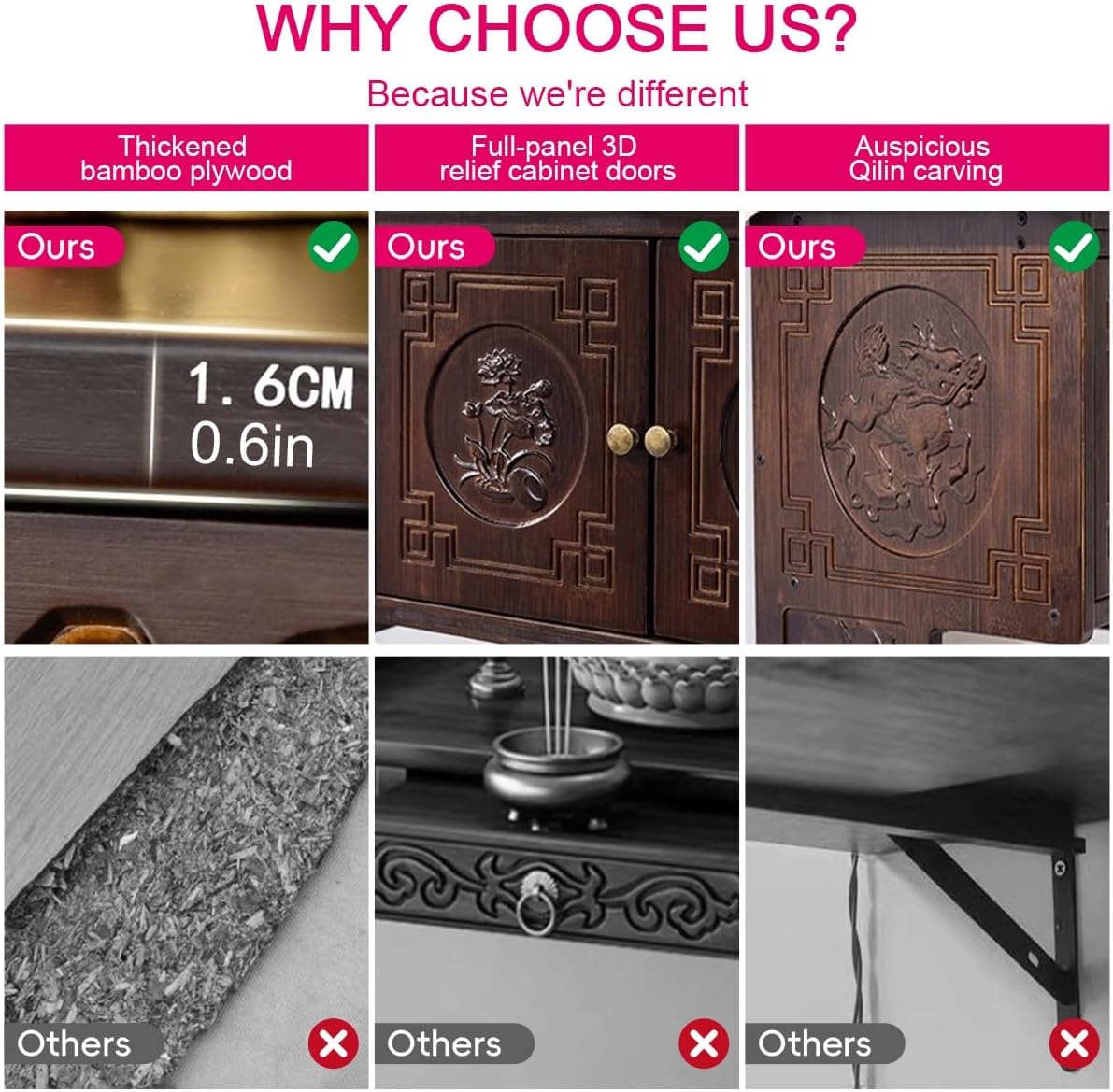 【Sacred Space Center】 as a meditation altar, Buddhist shrine, Wiccan altar, or Catholic prayer table. Ideal for spiritual practices, ancestral veneration, and creating a serene focus point in any room.【Pooja table】 Adoption of retro chinese style design, which is a nice decorative buddha altar for enshrining buddhism. with fine workmanship, which is not easy to wear and tear, and very practical in use-Name: Meditation Altar Table,Buddha Shrine Altar Table,Buddhist Shrine Table,Buddha Altar Table,Meditation Shrine Buddhist Altar Table,Alter table,Mandir for home,Temple for home-Style: Chinese-Material: Solid wood-Wooden Structure Craftsmanship: Carving-Style Positioning: High-Quality Luxury【Package Includes】1 * Buddha Altar Table(Excludes Buddha statues, candles, incense burners, and other items.)【Friendly reminder】1.We only sell altars; we do not sell Buddha statues, offerings, or other items.2.Please note that due to different monitors, there may be slight color difference, please understand