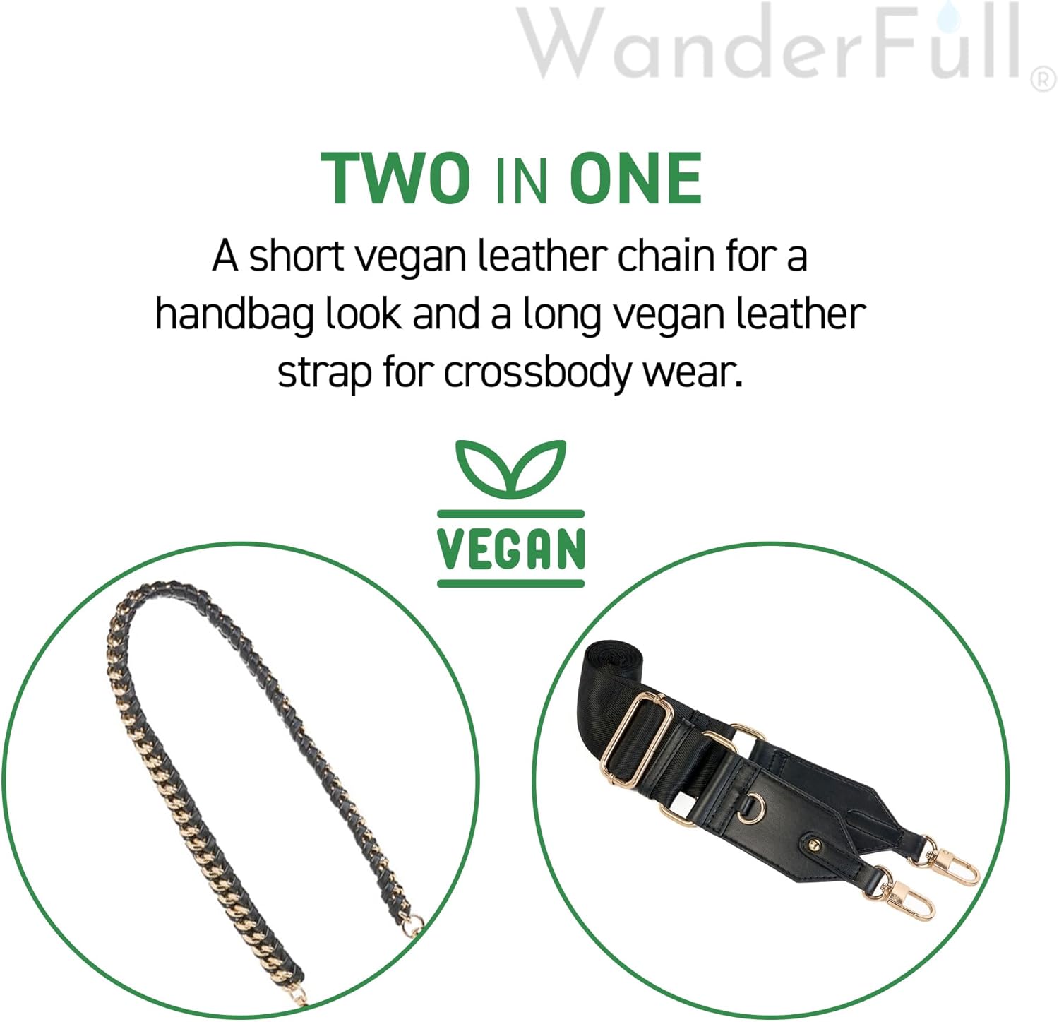 | Strap Type | Chain, Vegan Leather |