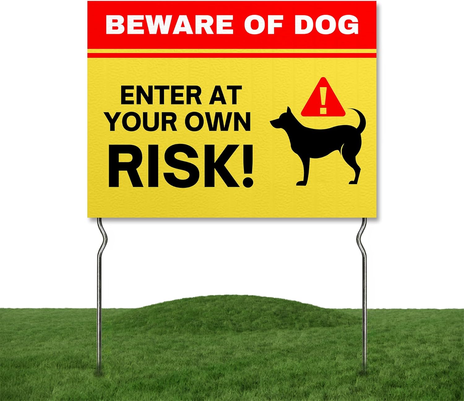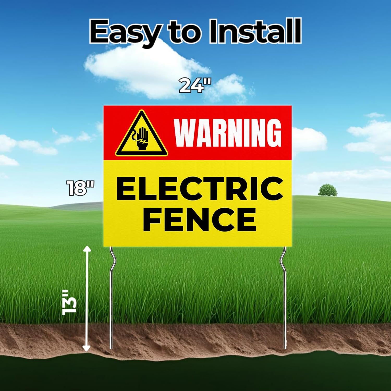 Warning: Electric Fence! Yard Sign by DC | 24"x18" Double Sided Security Garden Sign with 13” Metal Stakes | Waterproof Signs for Lawn, Patio, Sidewalk & House | Set of 2 | Made in USA