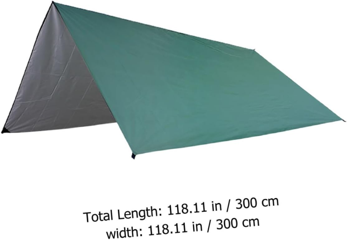 Package List 1 2 x storage bags 6 x ropes 4 pegs Features - Color: Green Camping Tent. - Material: Oxford Fabric Outside Tent. - Size: 300.00X300.00X0.01cm/117.90X117.90X0.004in Tent. - Tent is large enough inside for family outdoor adventure, an family tent for outdoor camping or hiking at all weather Tent for Camping. - You can send it to your families and friends who like outdoor camping as a , they will be happy Tents. - Lightweight and portable, this camping tent is very convenient for you to carry Canopy Tent. - This camping tent is a for mountaineering, all-weather fishing, wild survival, picnic, summer beach and so on Hiking Tent. - It is made of material, which can be used for a long time Outdoor Travel Tent.Goods DescriptionCamping Tent It not only ensures the effects of sun protection and ultraviolet protection in summer, but also does not cause sweltering due to excessive thickness.Camping Tents It is made from material for long time and durable use.Outdoor Travel Tent With moderate thickness
