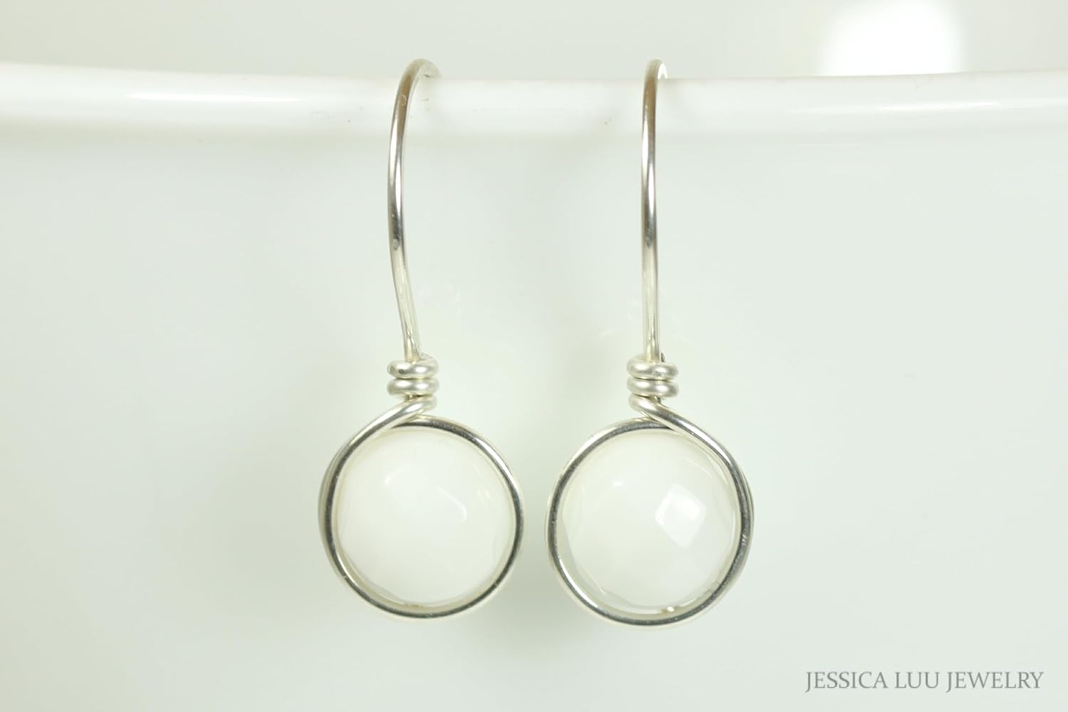 White Alabaster Gemstone Earrings Handmade by Jessica Luu Jewelry